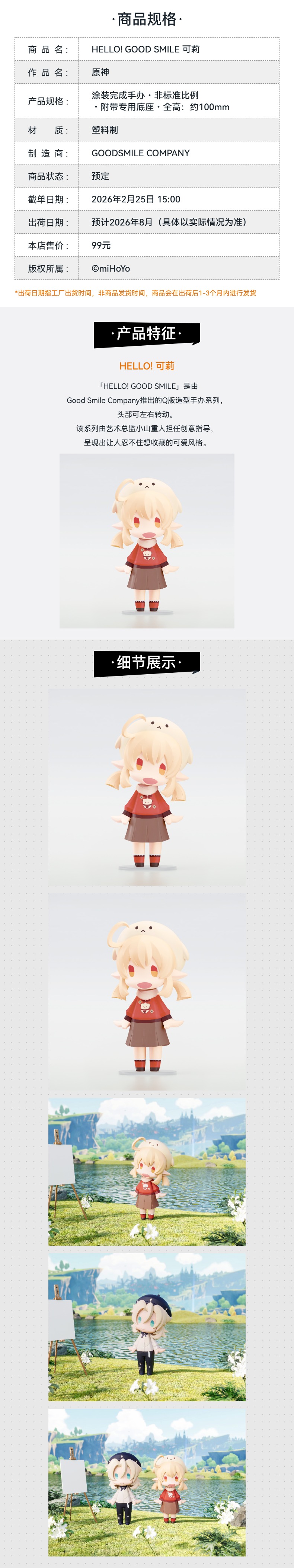 【GSC预售定金】HELLO! GOOD SMILE 可莉/阿贝多 原神 手办模玩