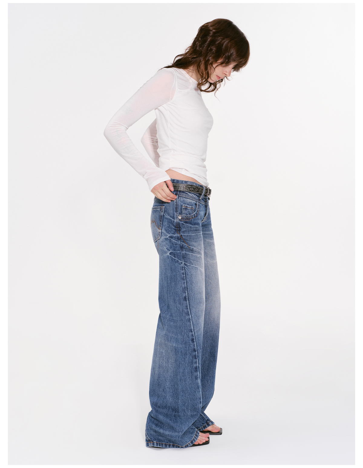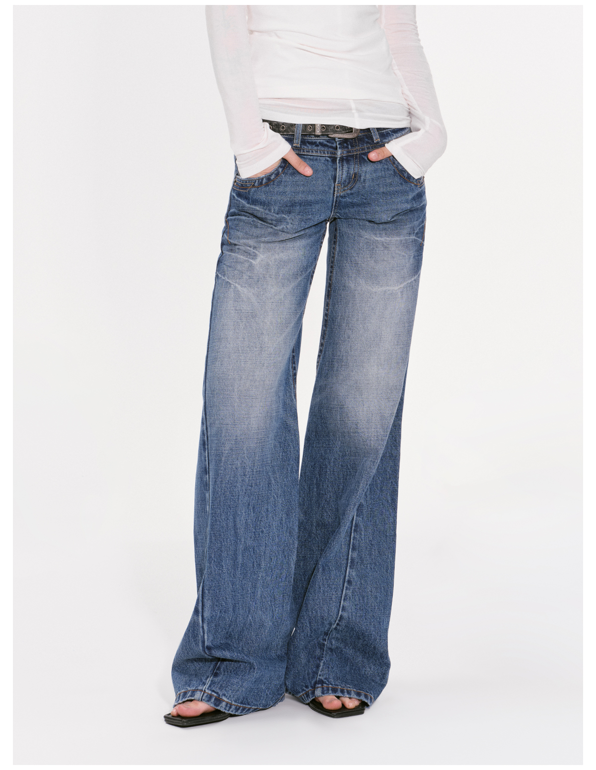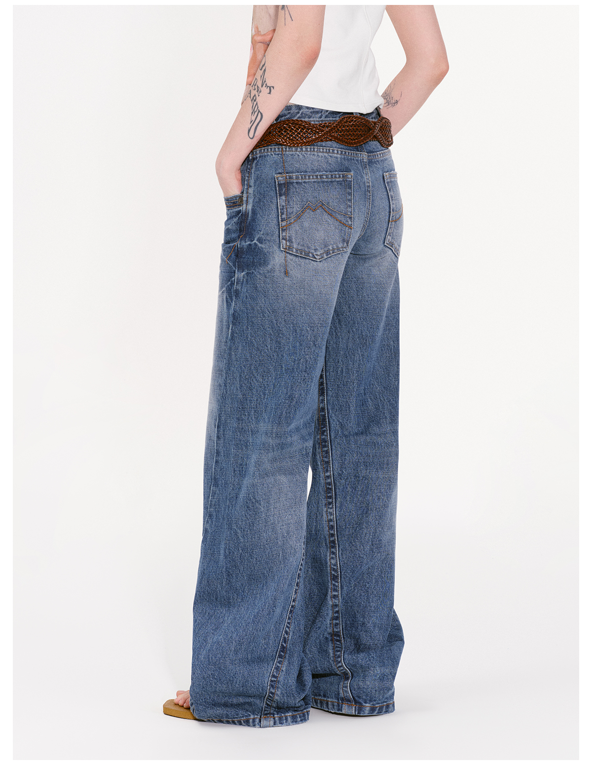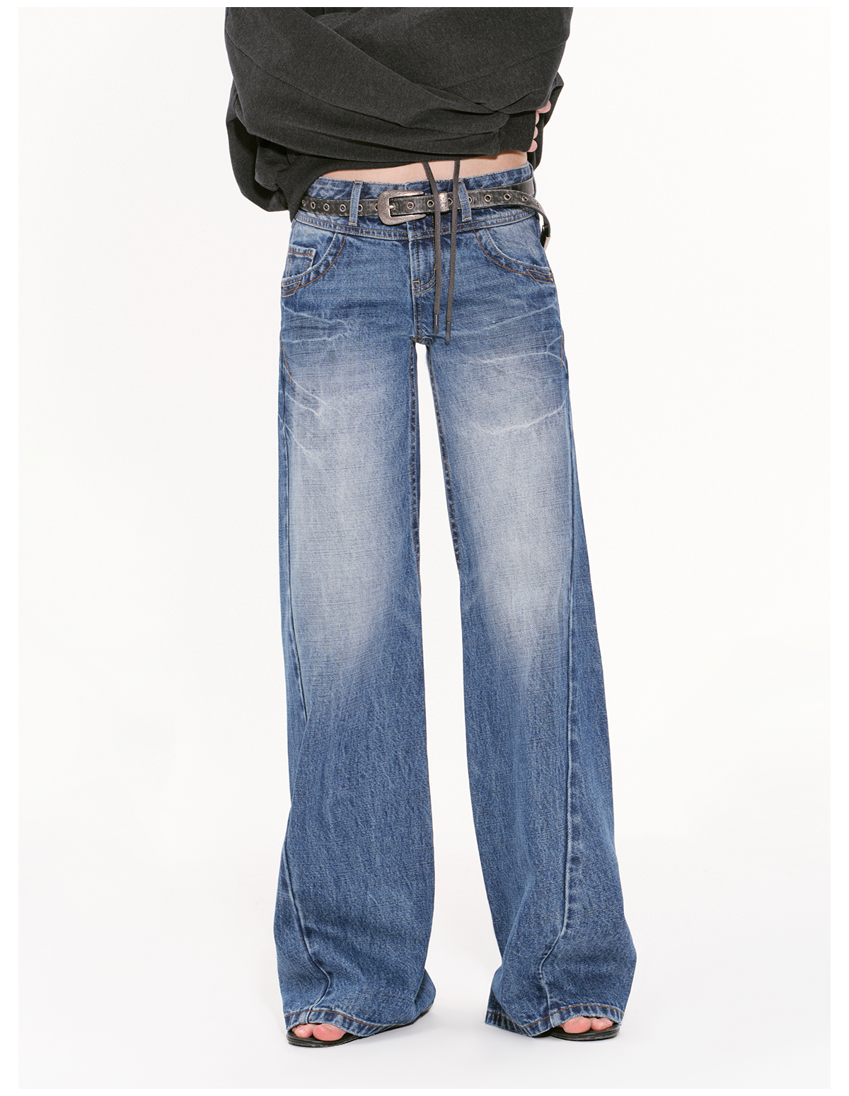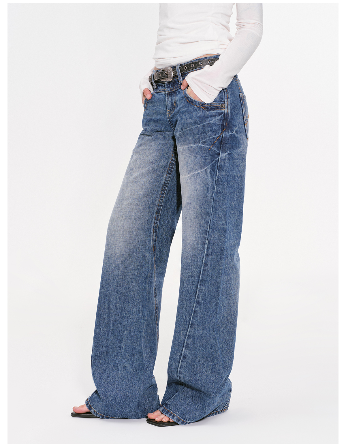 出逃赤岗西/24AWN61/复古水洗蓝美式高街低腰宽松直筒牛仔裤