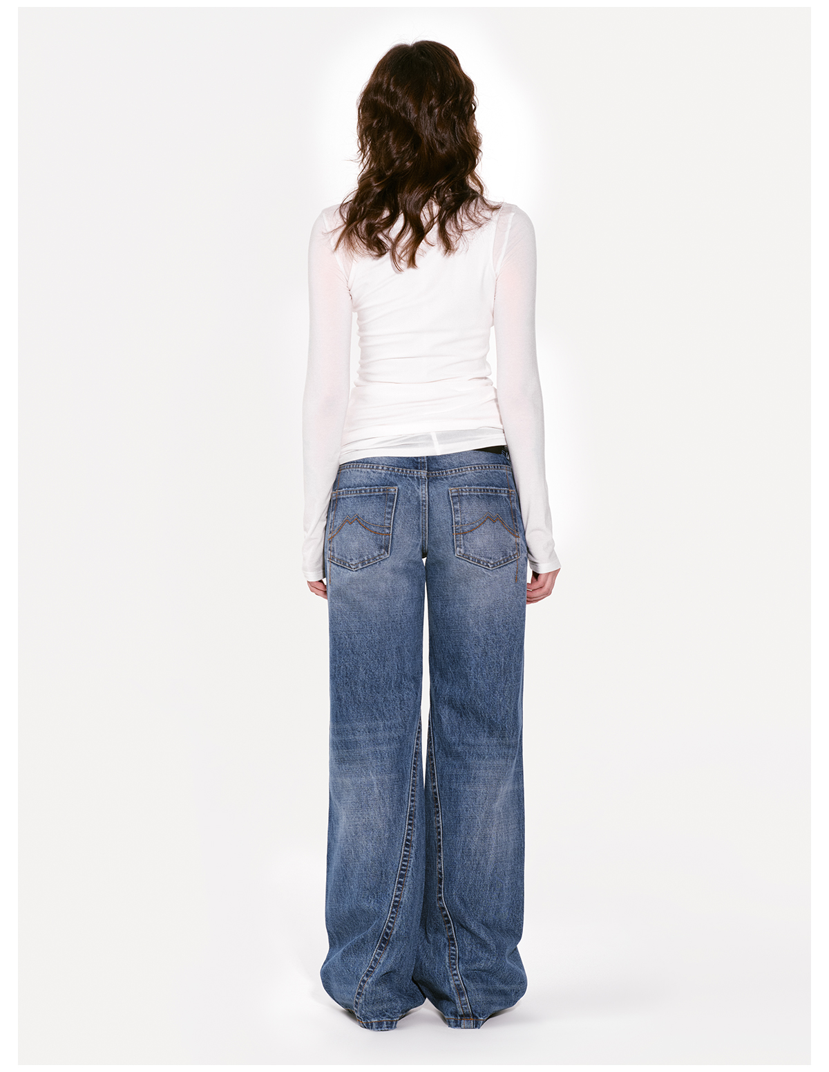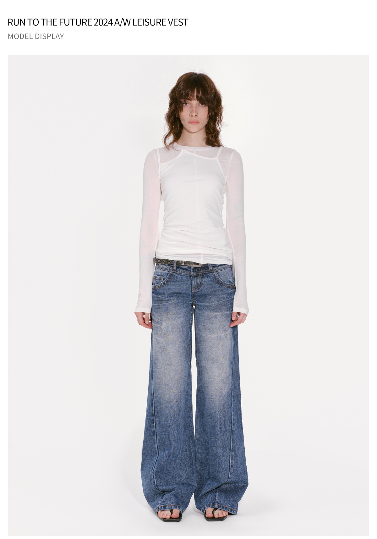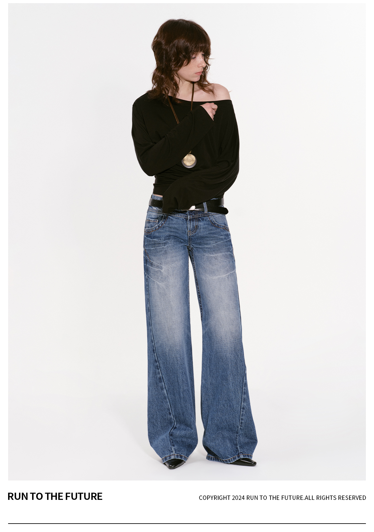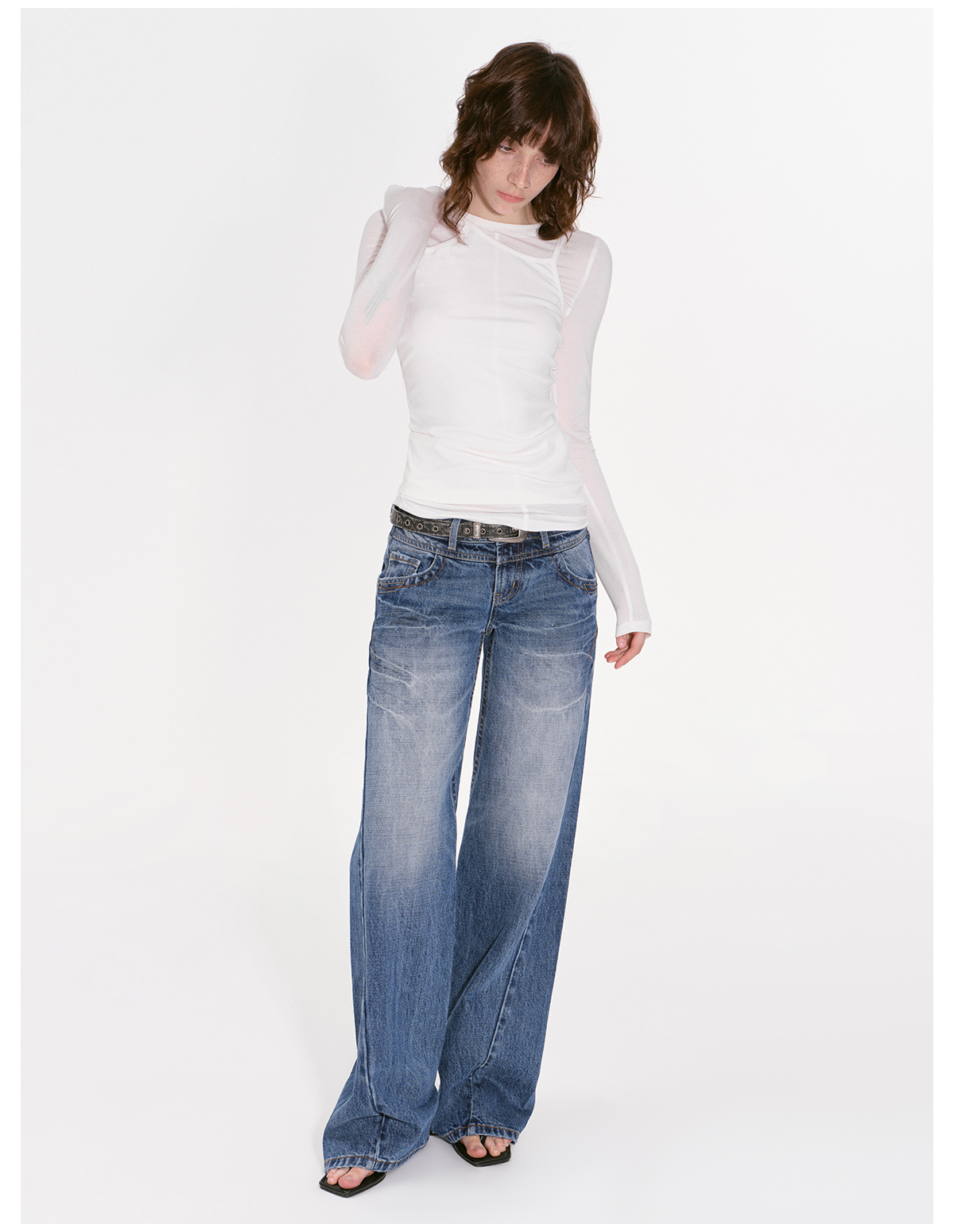 出逃赤岗西/24AWN61/复古水洗蓝美式高街低腰宽松直筒牛仔裤