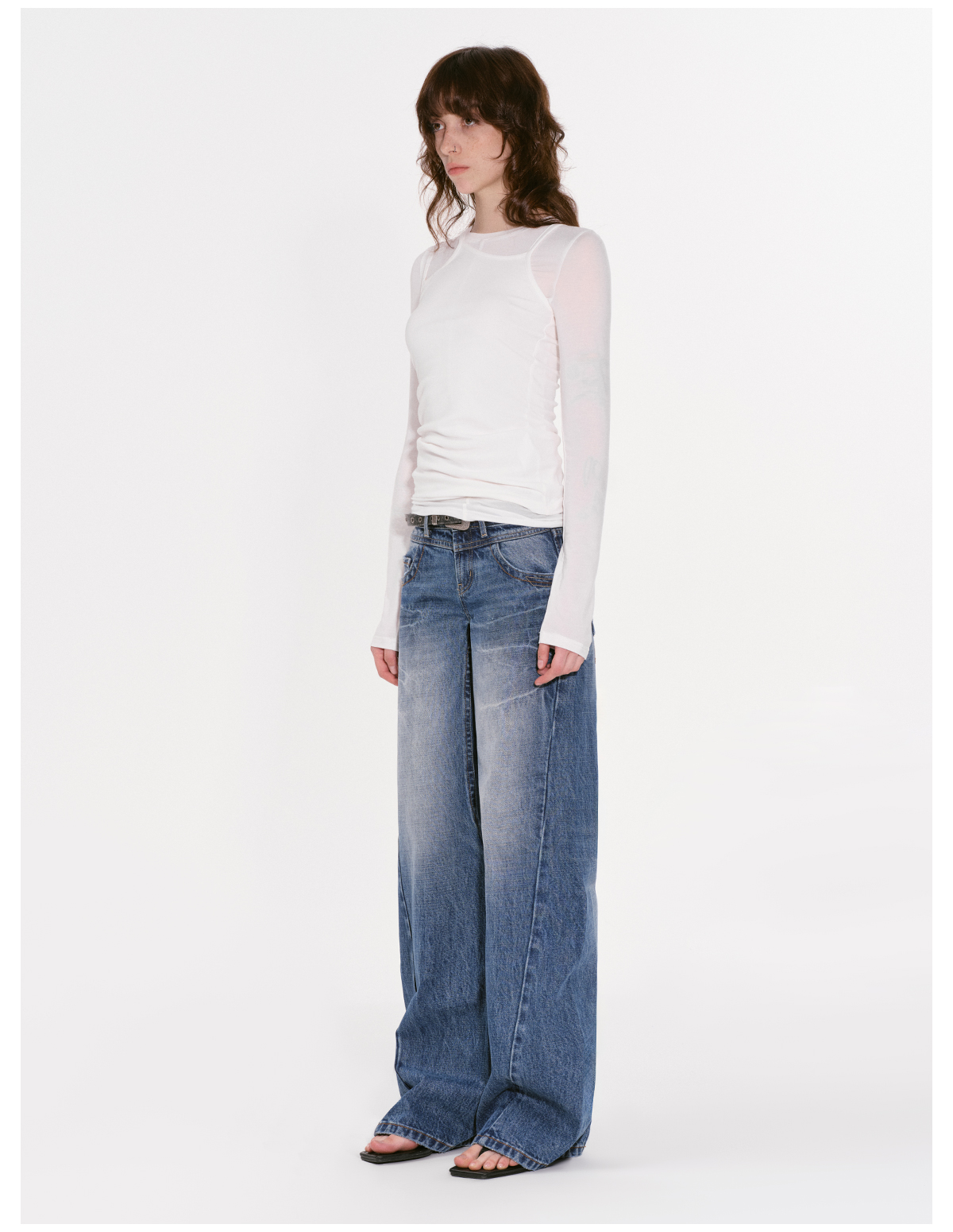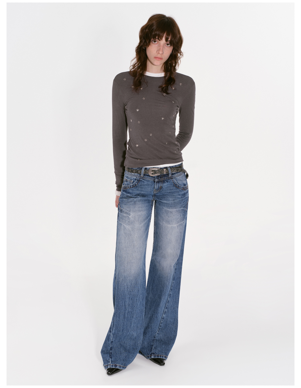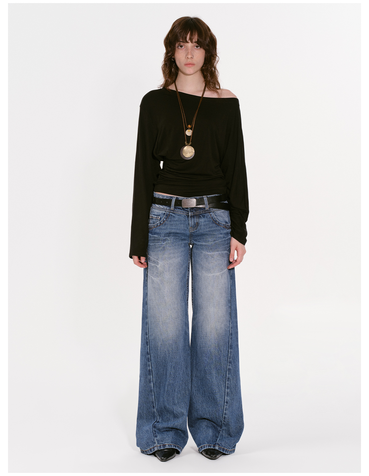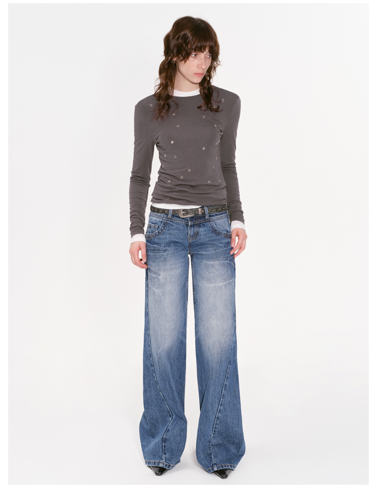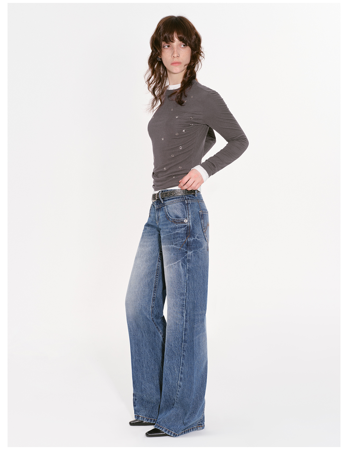 出逃赤岗西/24AWN61/复古水洗蓝美式高街低腰宽松直筒牛仔裤