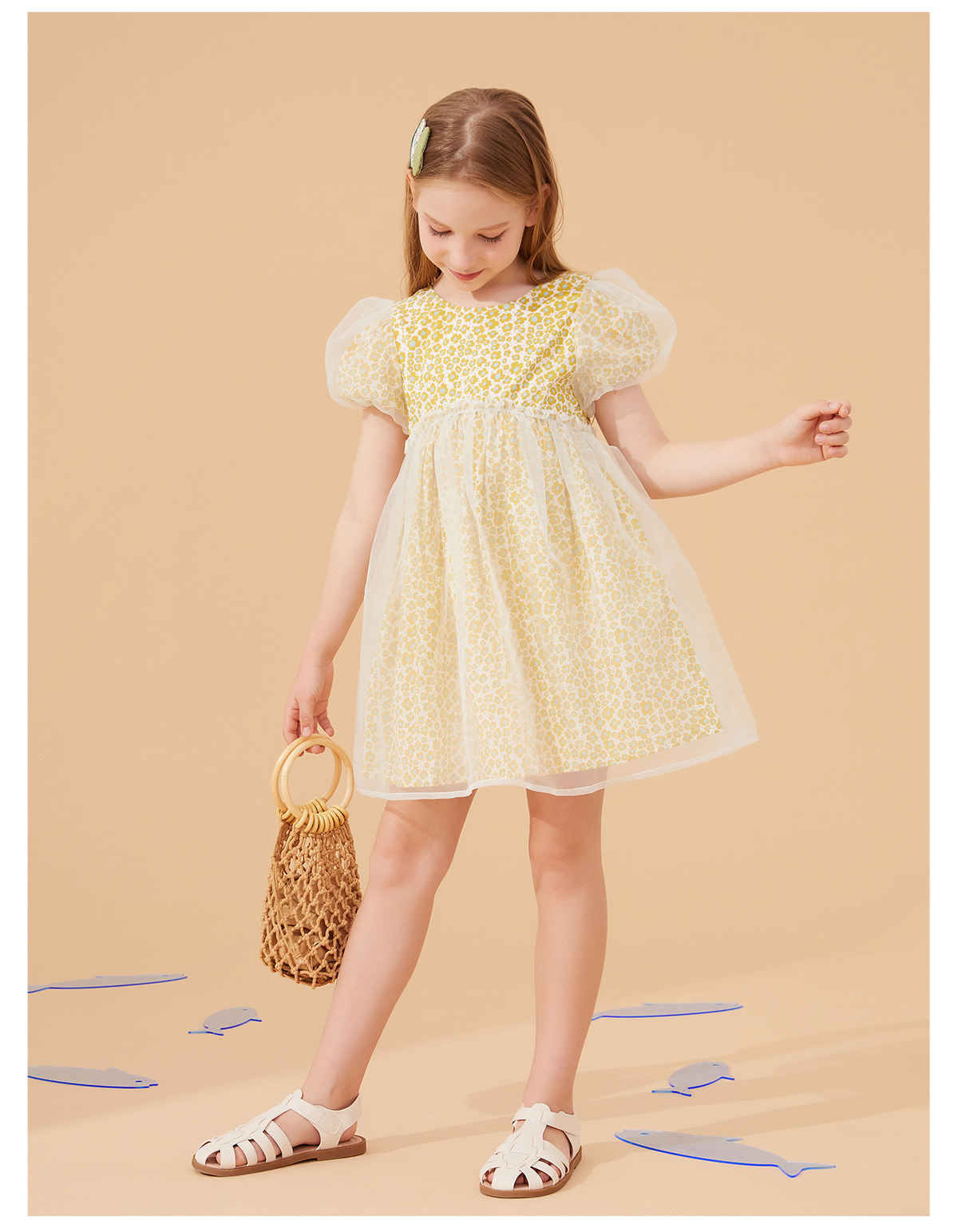 littletime女童碎花连衣裙夏季短袖2022新款洋气小清新女孩夏装裙
