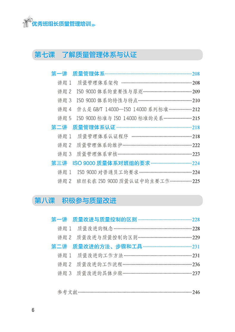 本书为增强班组长的质量意识和提高质量管理水平而写。全书将班组长质量管理培训分为8个标准模块,主要包括:树立正确的质量管理理念、必须掌握的质量管理工具、懂得质量检验方法、掌握现场质量管理要点、积极开展QC小组活动、严控不合格品的产生、了解质量管理体系与认证以