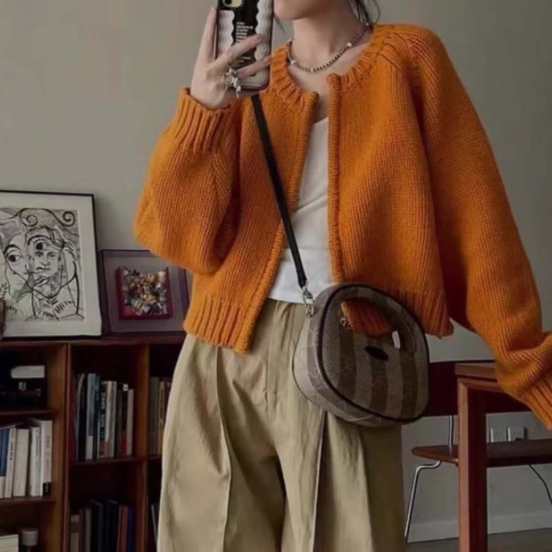 百蓝茵2025秋冬新款宽松灰色短款毛衣外套女装加厚拉链长袖针织开衫上衣★