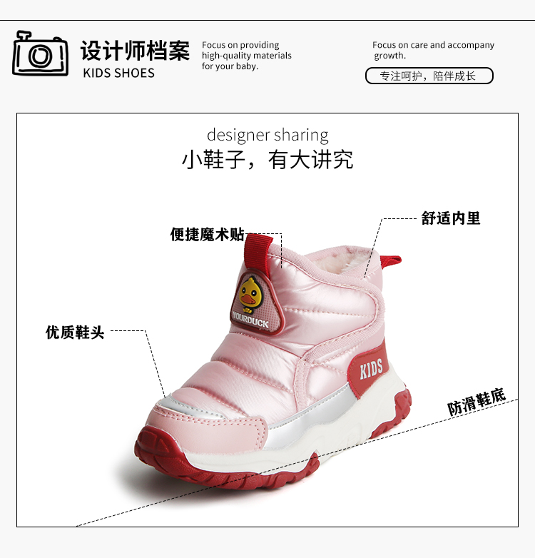 YOUR .DUCK小黄鸭儿童雪地靴男童棉靴新款冬季加绒加厚女童棉鞋小孩宝宝保暖鞋23-32