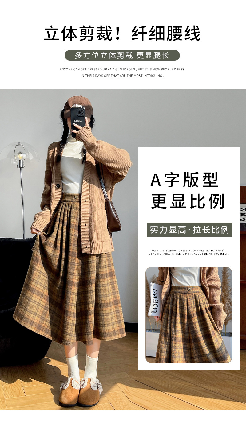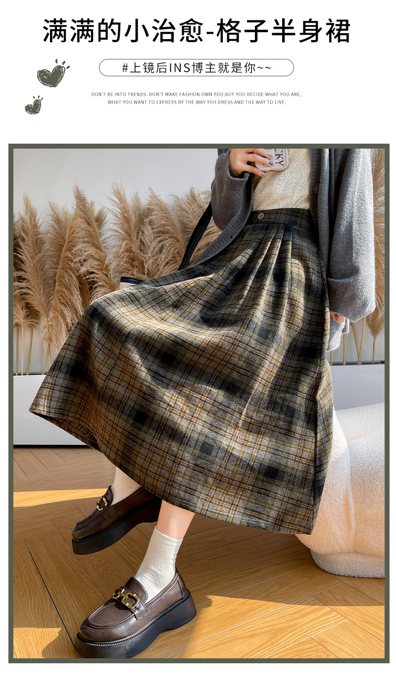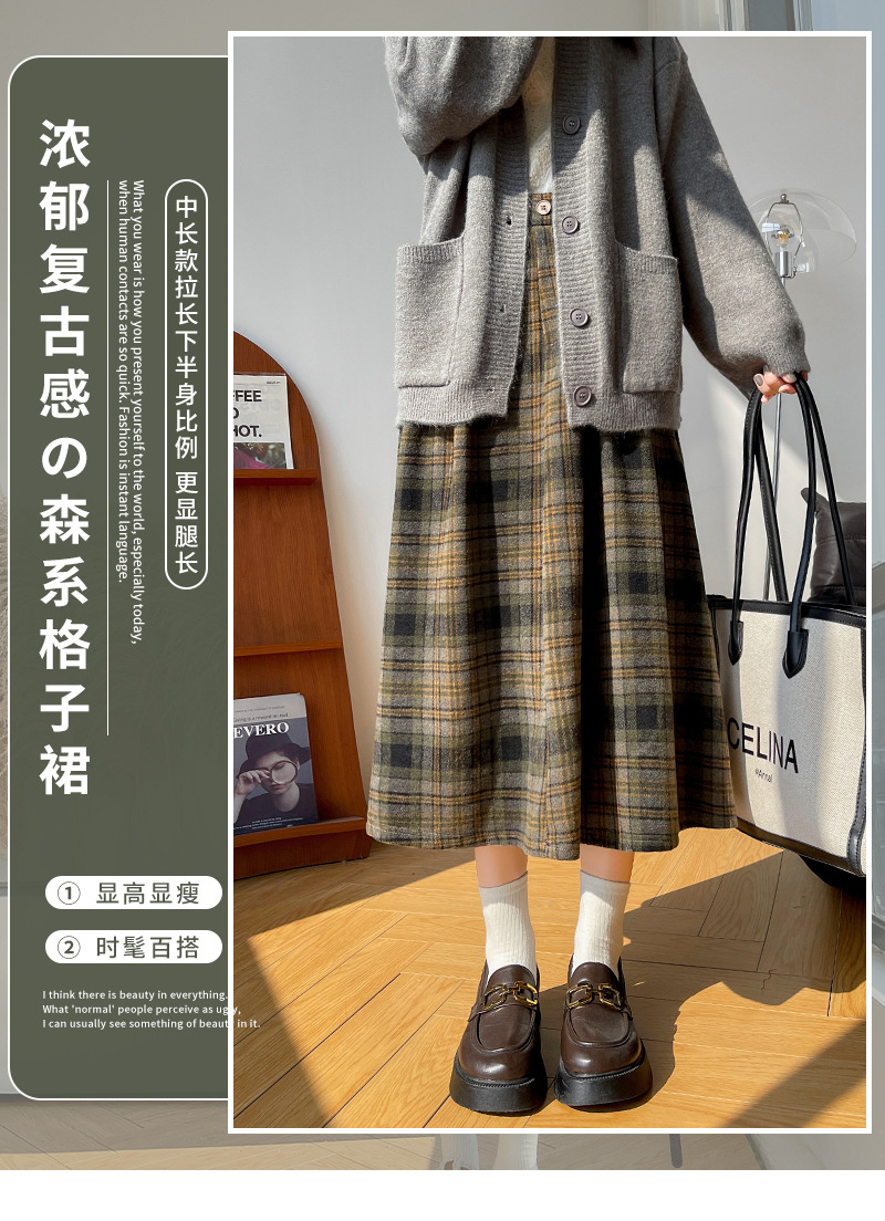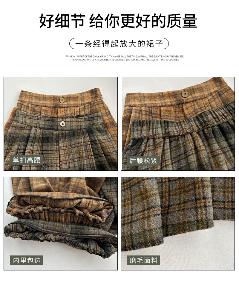 【学院风复古少女裙】复古森系毛呢格子裙 秋冬女高腰学院风半身裙显瘦遮胯A字大摆伞裙