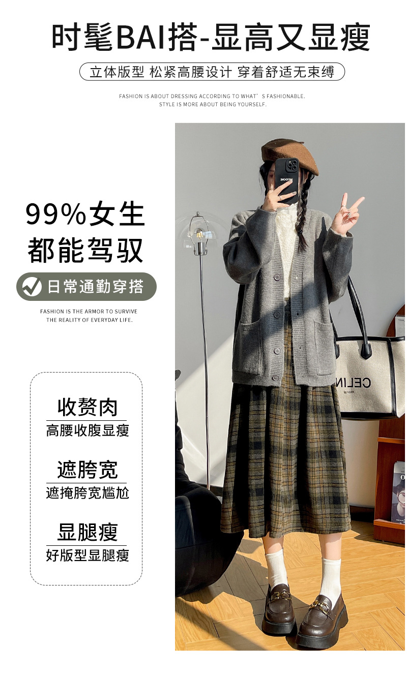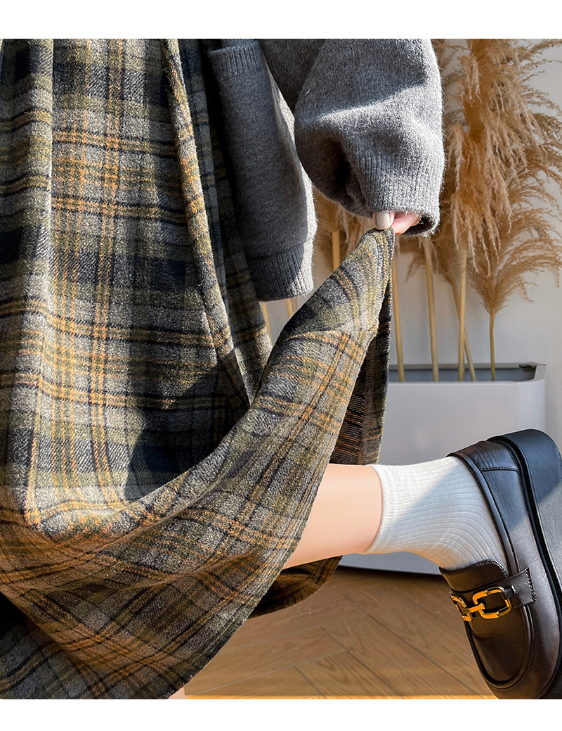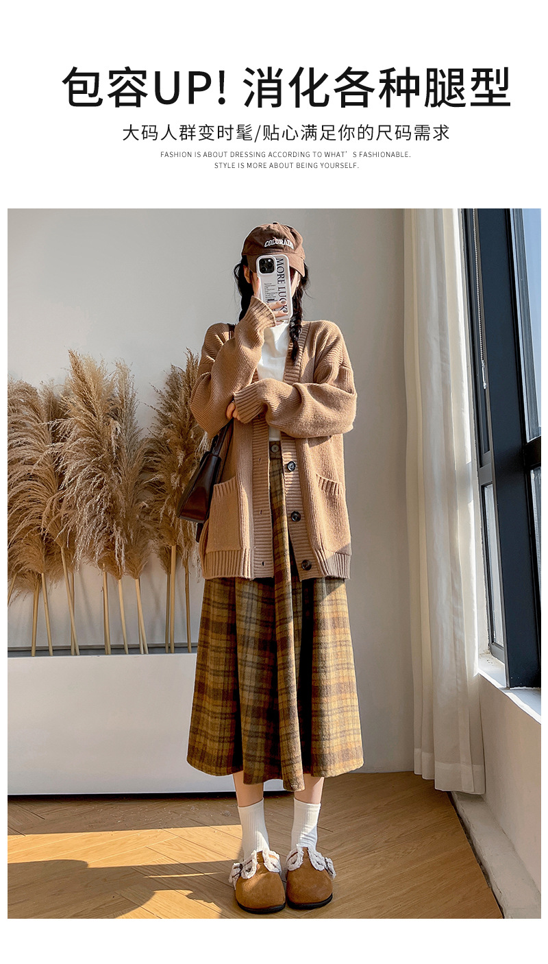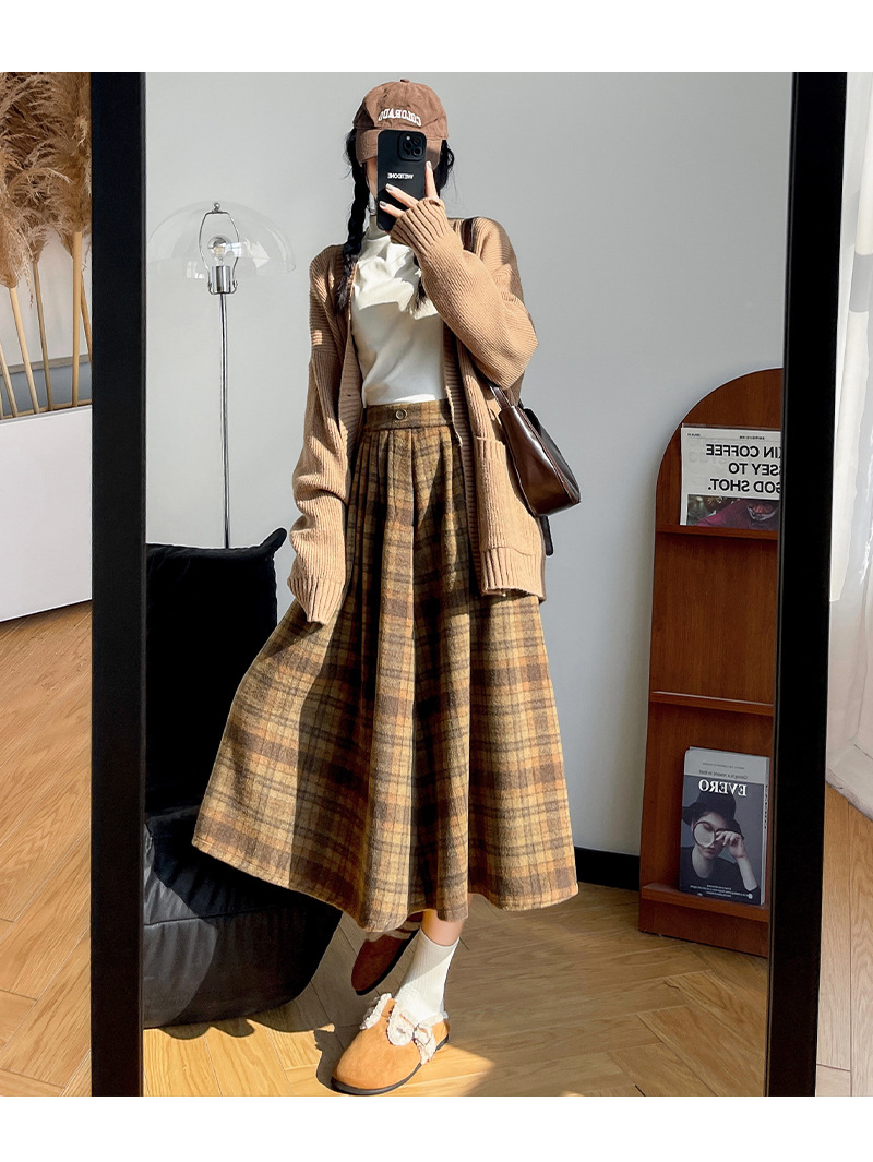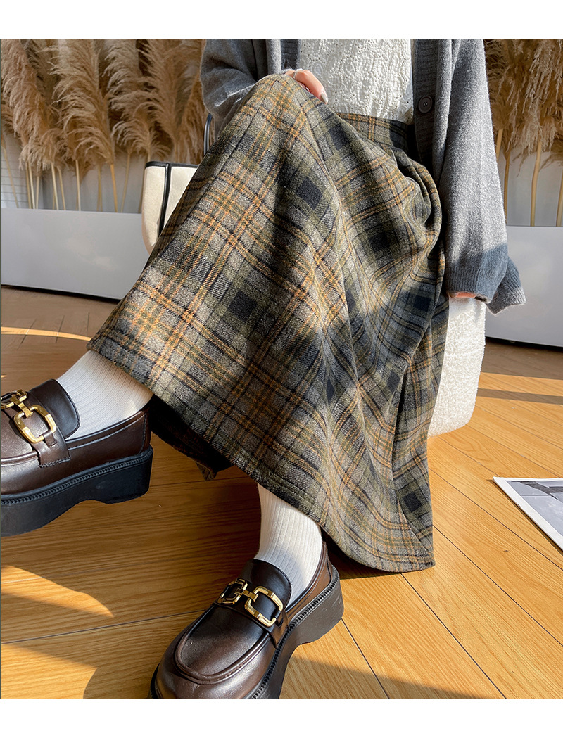 【学院风复古少女裙】复古森系毛呢格子裙 秋冬女高腰学院风半身裙显瘦遮胯A字大摆伞裙