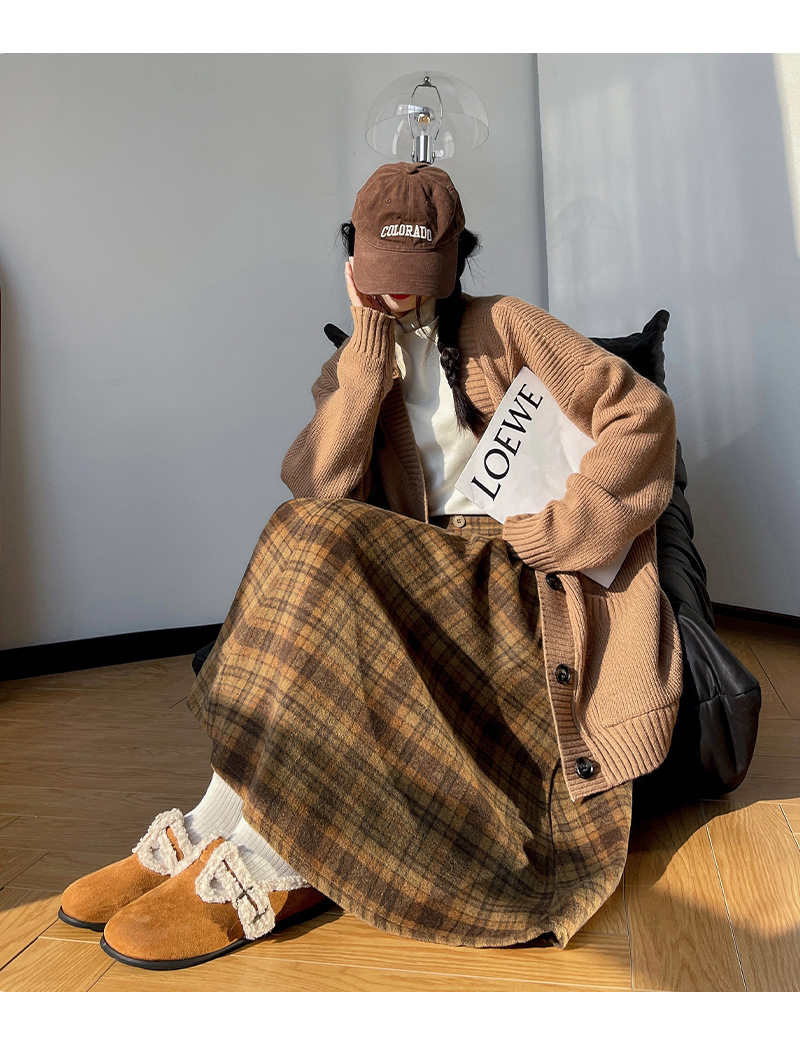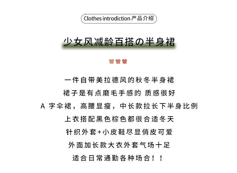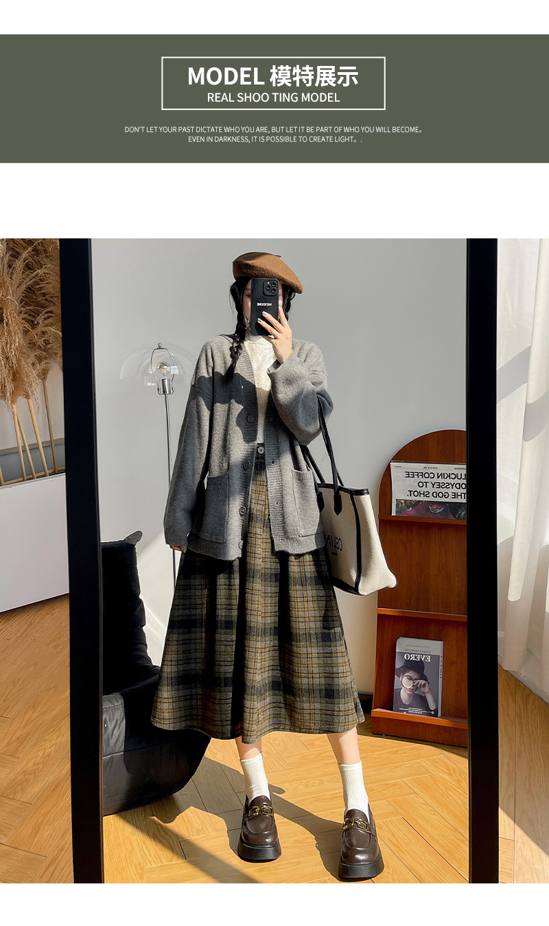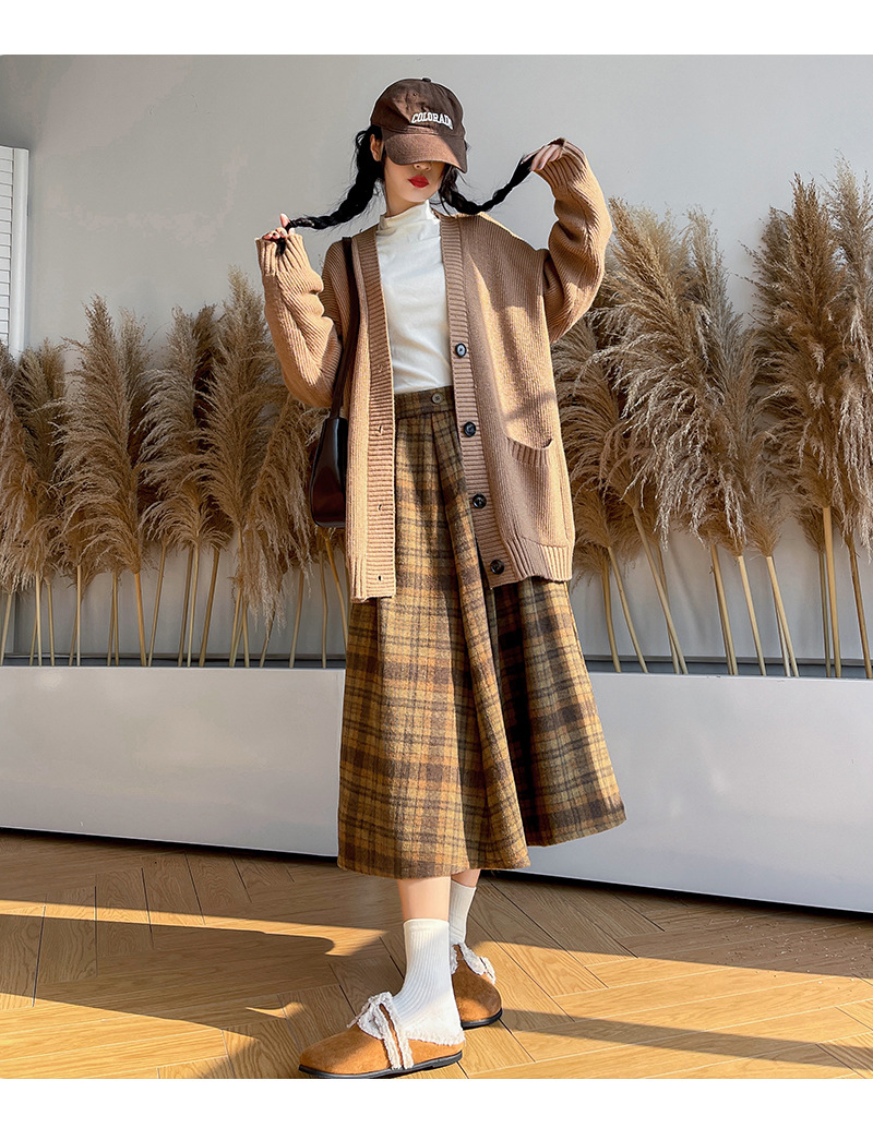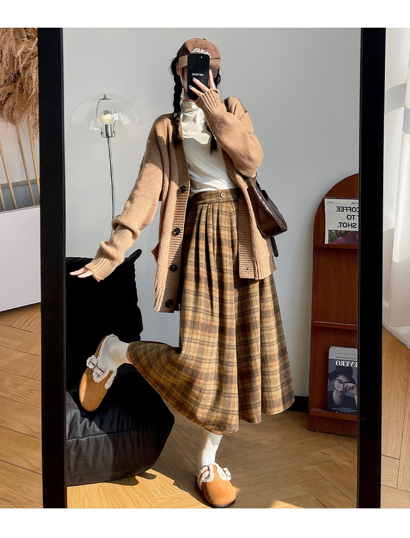 【学院风复古少女裙】复古森系毛呢格子裙 秋冬女高腰学院风半身裙显瘦遮胯A字大摆伞裙