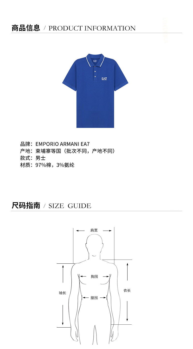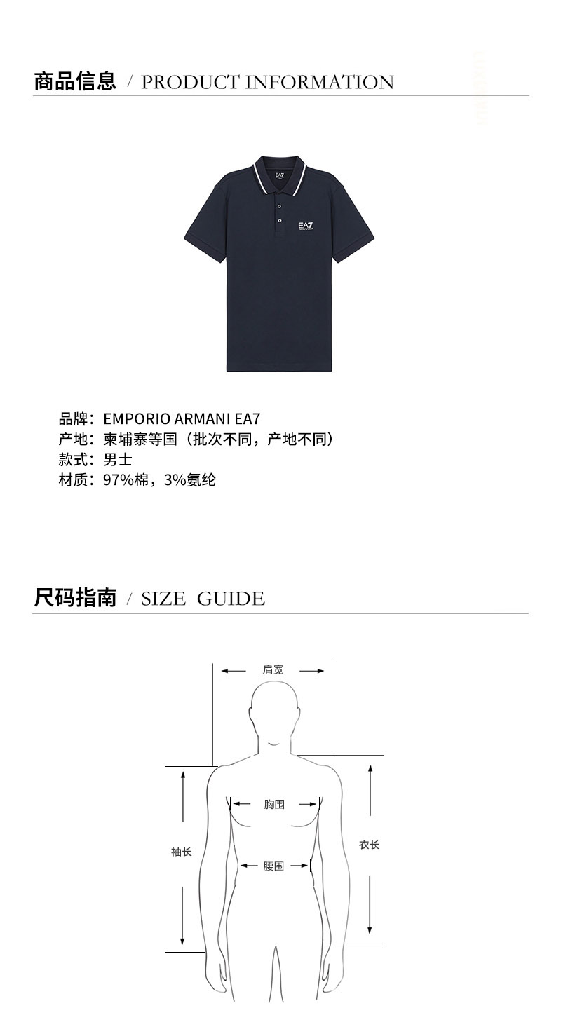 EA7/EA7 男士短POLO 男士棉质短袖POLO衫 8NPF06 PJ04Z