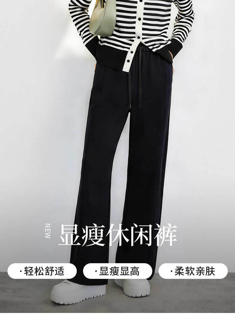 【商场同款】CNT5919 " 弹力松弛裤 " 全松紧腰头久坐不勒 立体捏梗设计更显瘦显腿长 深灰色直筒裤