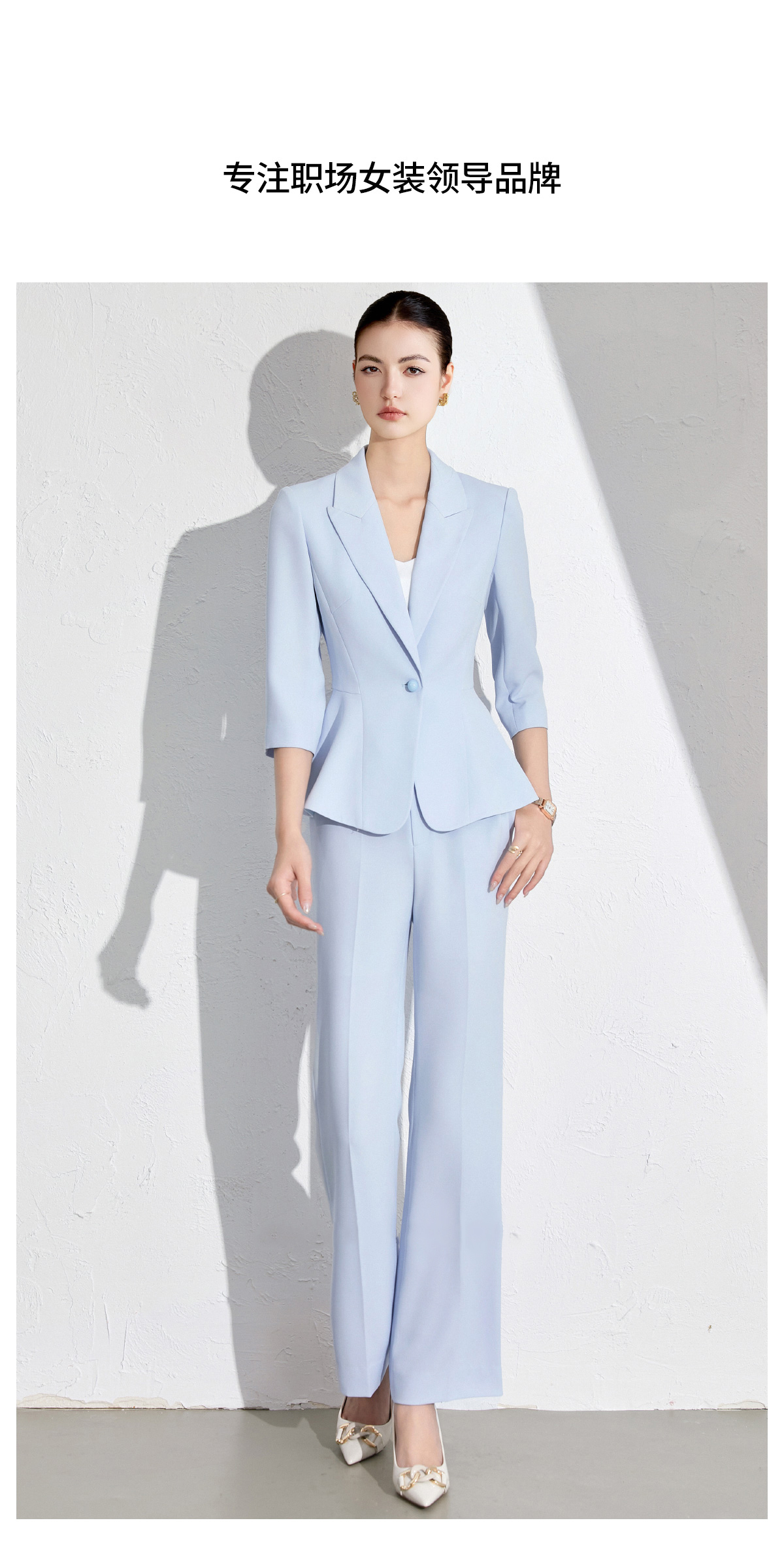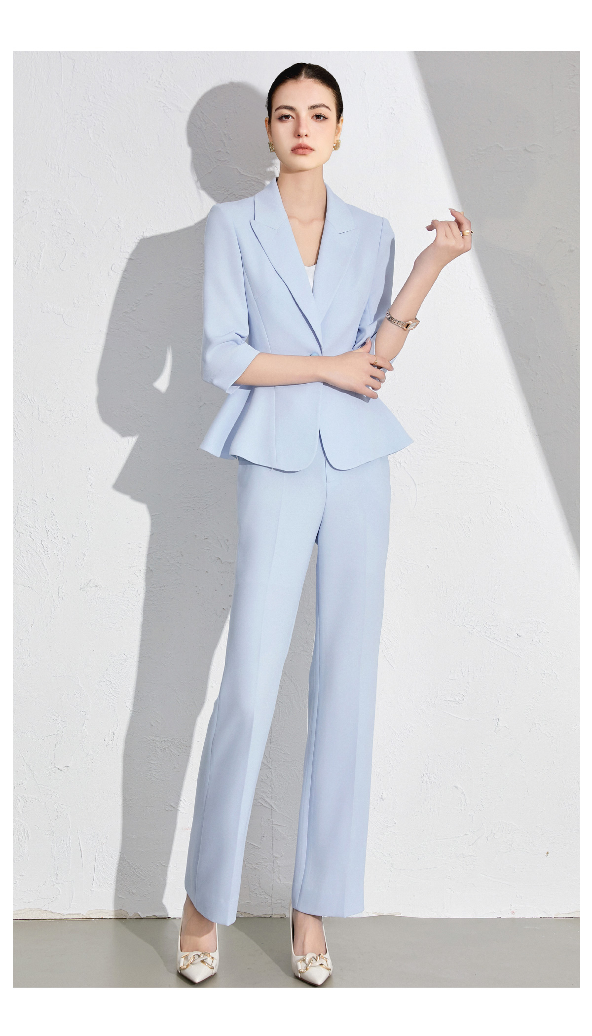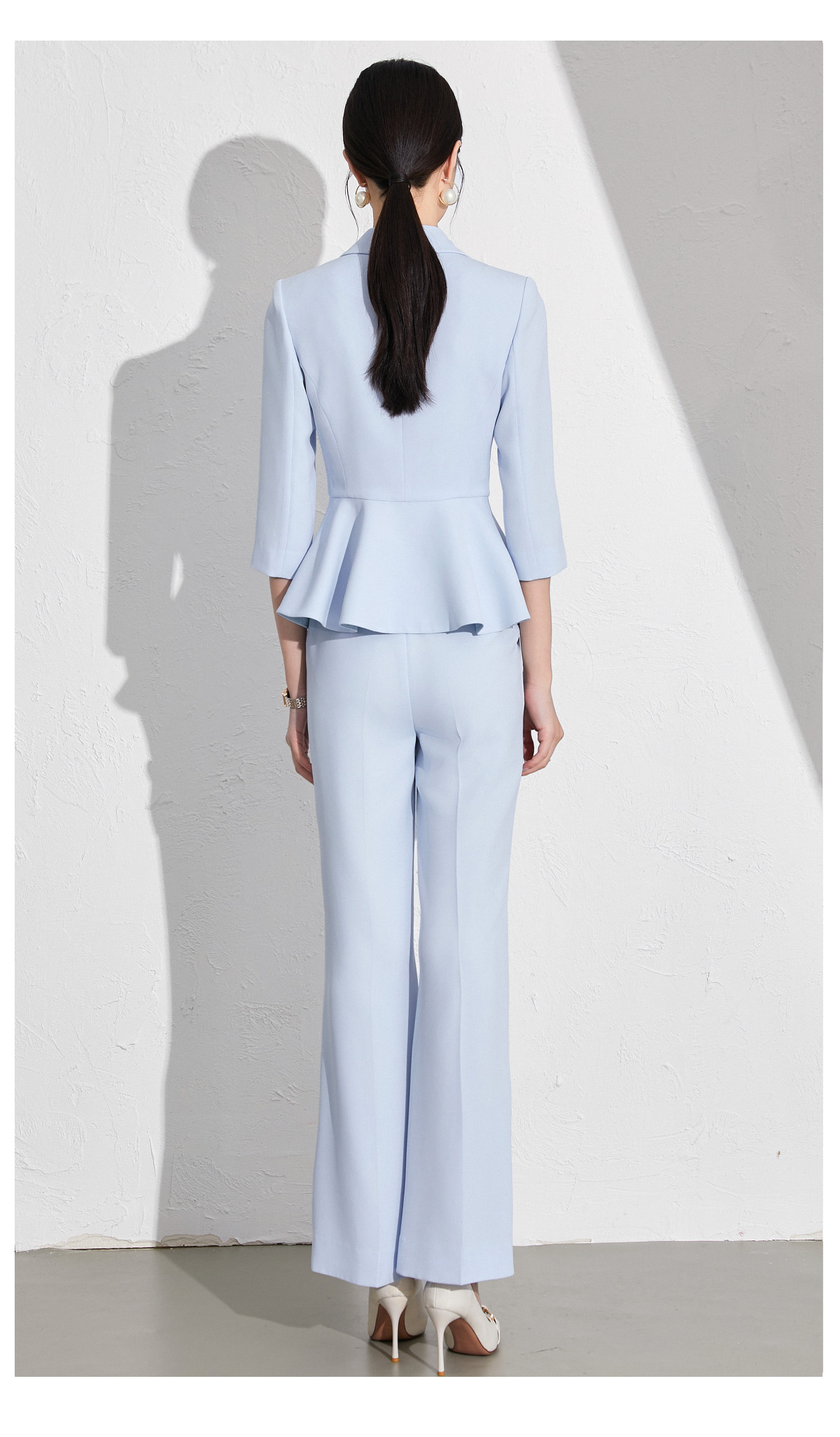 IWY/新款蓝色时尚干练职业套裤女荷叶边春秋西装阔腿裤套装1024CP06