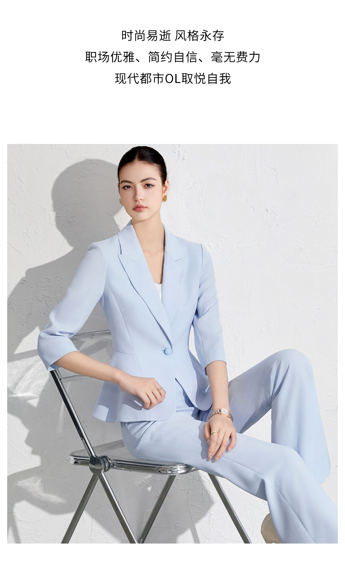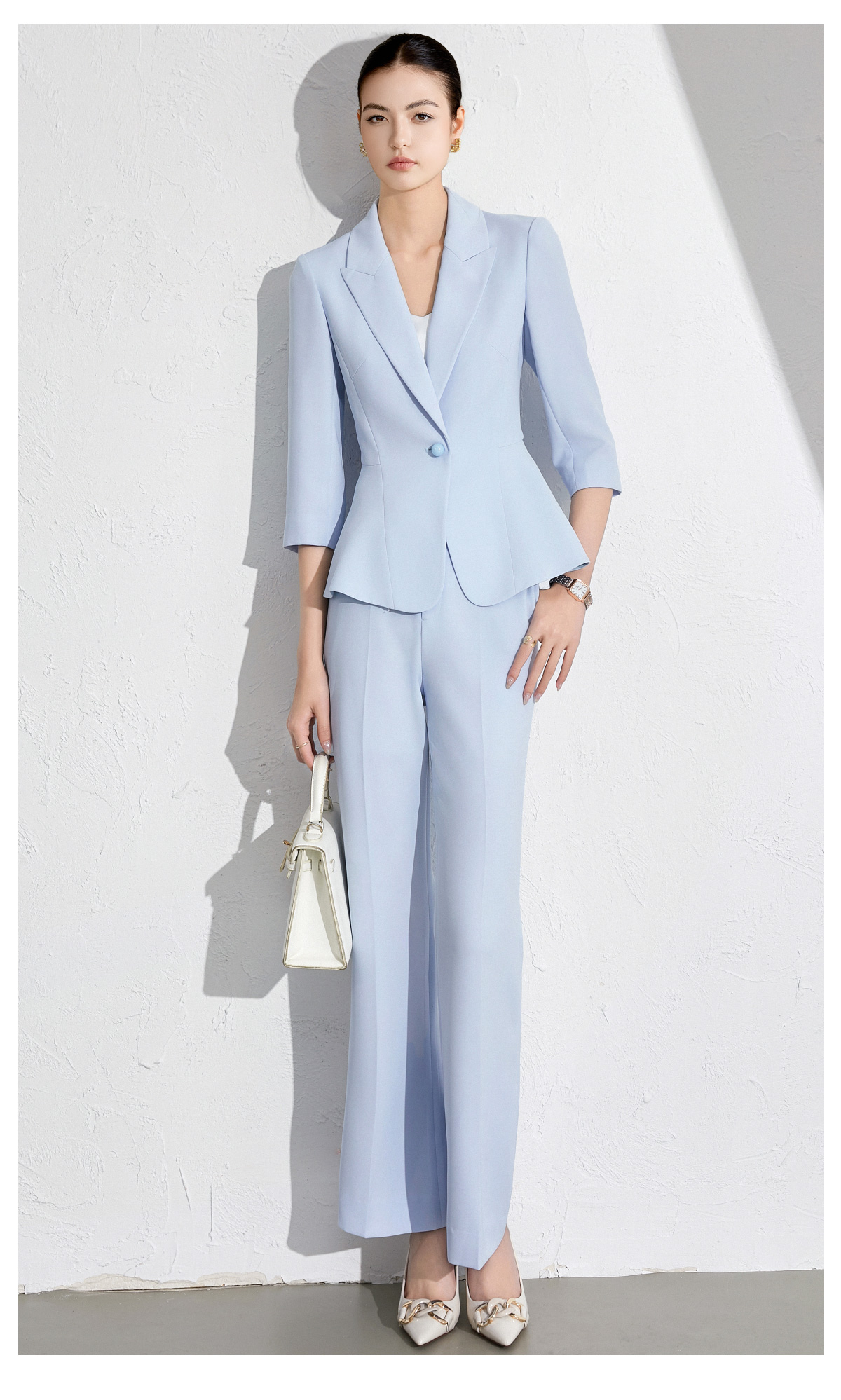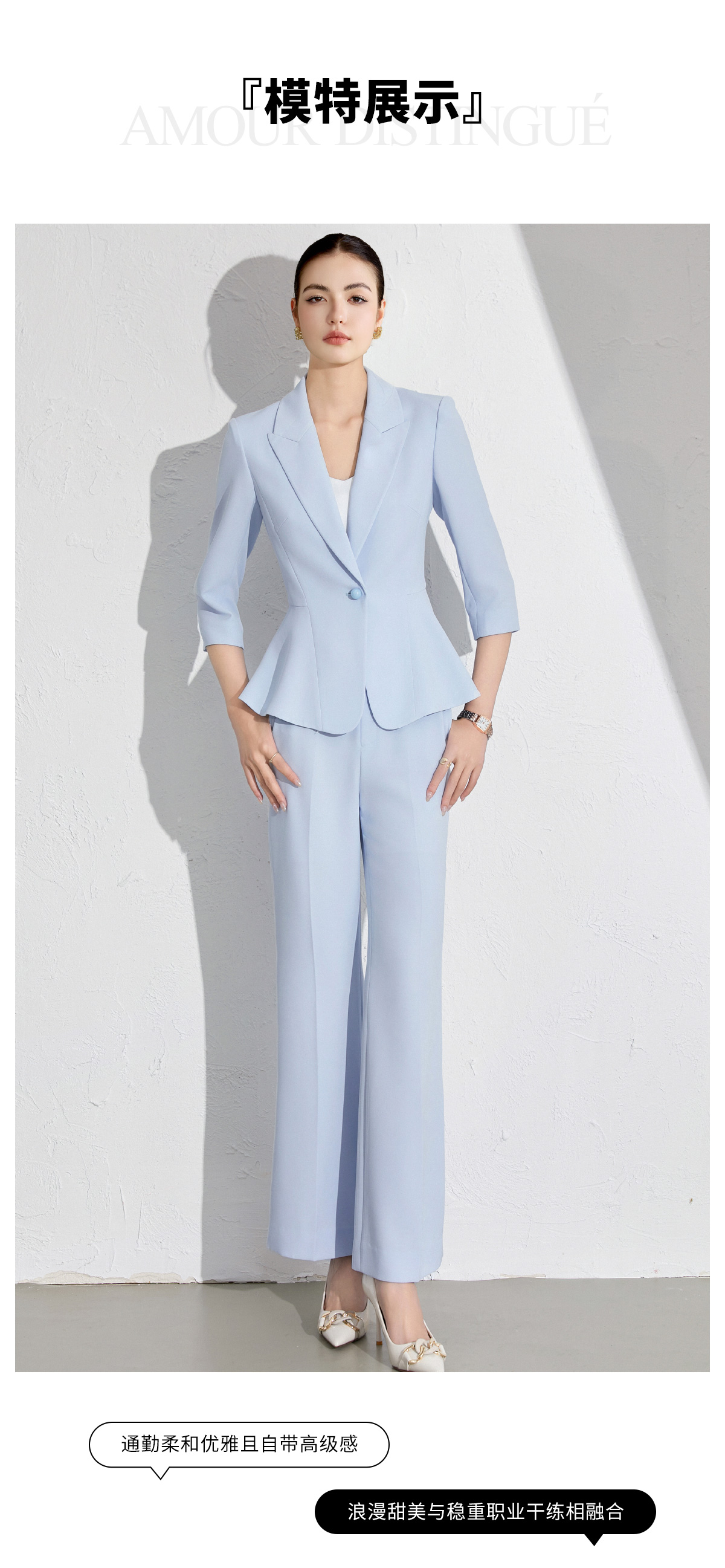 IWY/新款蓝色时尚干练职业套裤女荷叶边春秋西装阔腿裤套装1024CP06