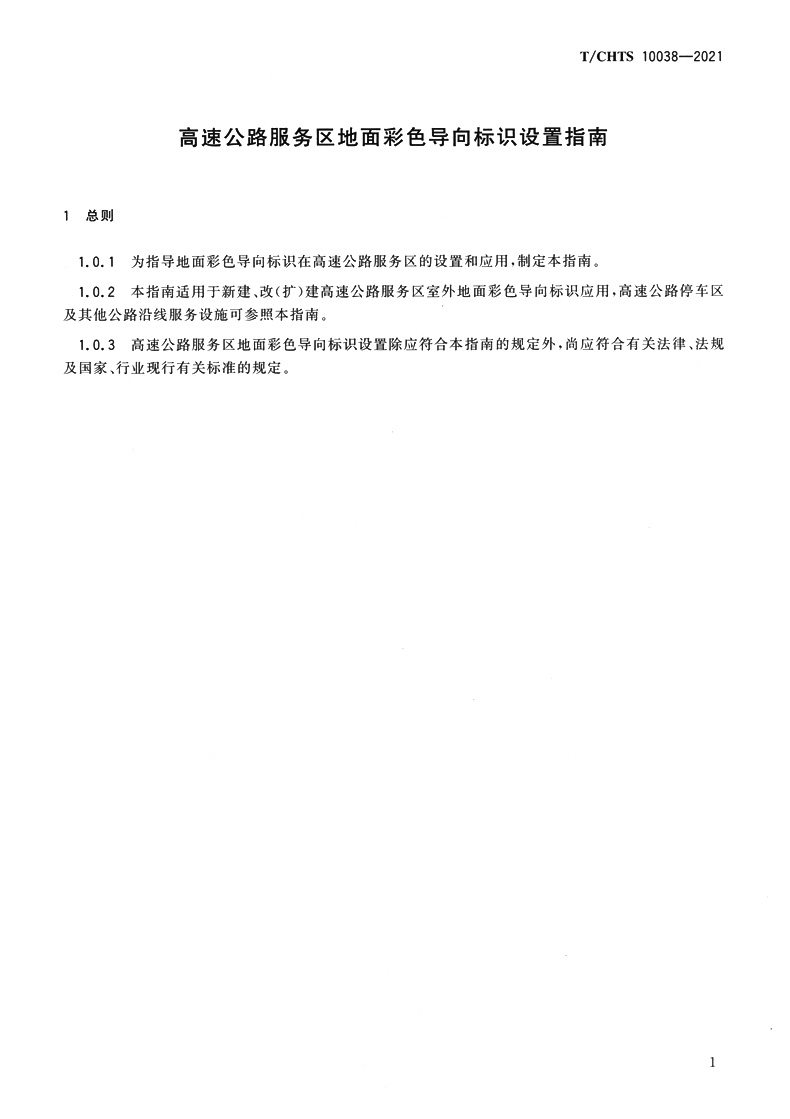 高速公路服务区地面彩色导向标识设置指南(T/CHTS 10038-2021)