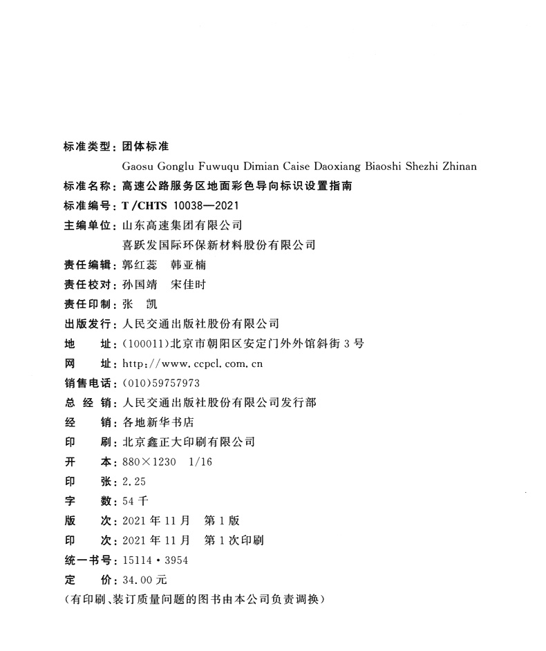 书名:高速公路服务区地面彩色导向标识设置指南(T/CHTS 10038-2021)