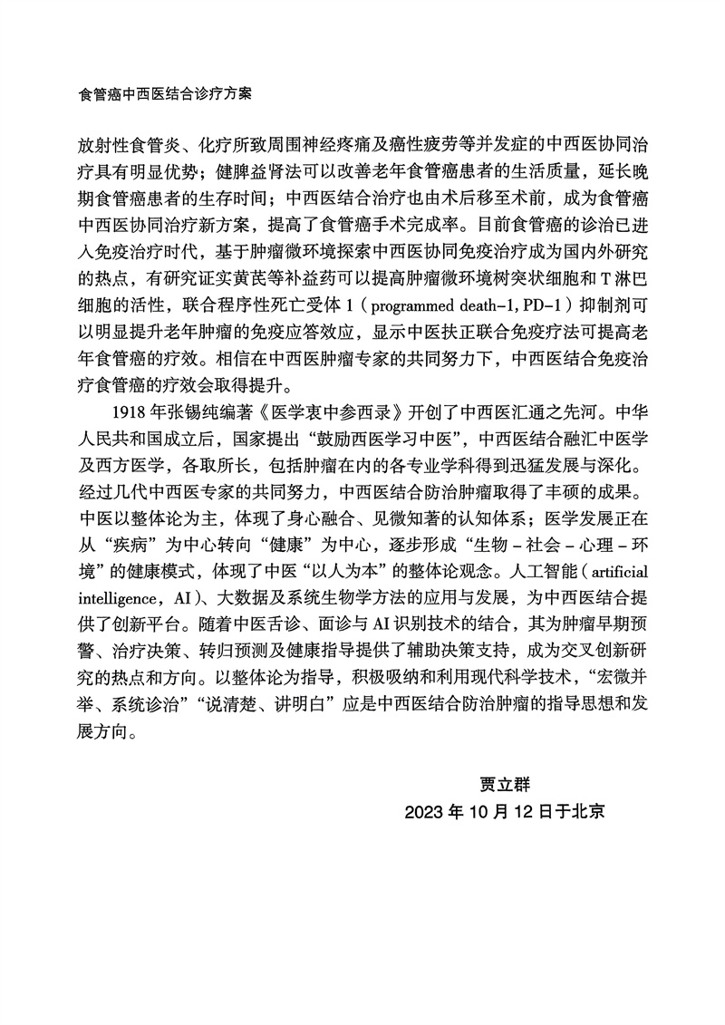 食管癌中西医结合诊疗方案 贾立群 曹邦伟 主编 中西医结合食管癌筛查与预防 食管癌免瘂与靶向治疗等 科学技术文献出版社