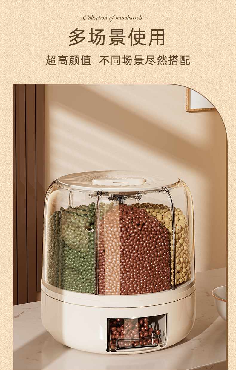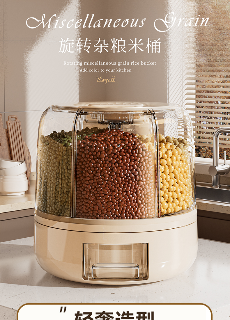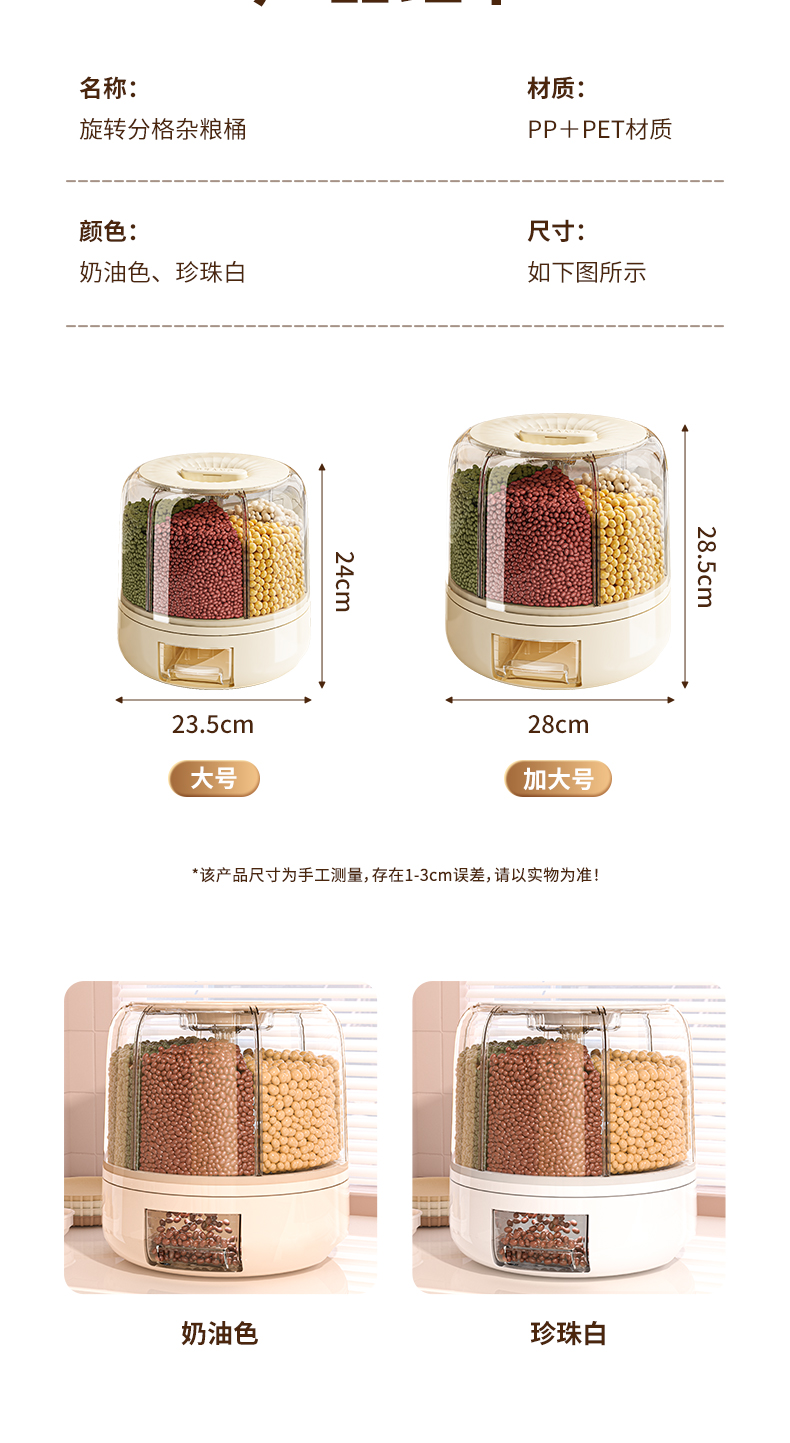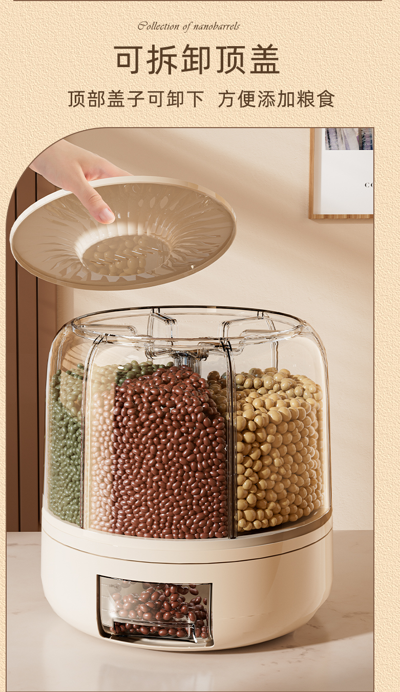 米桶家用可旋转五谷杂粮密封防虫防潮储米箱缸多格分装大米储物罐