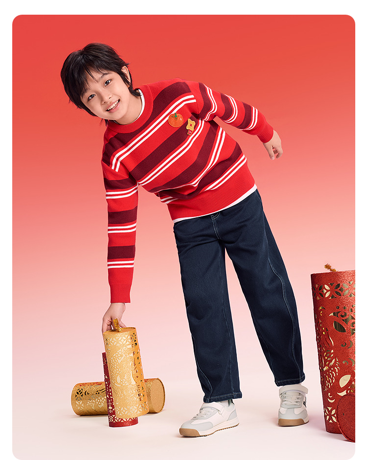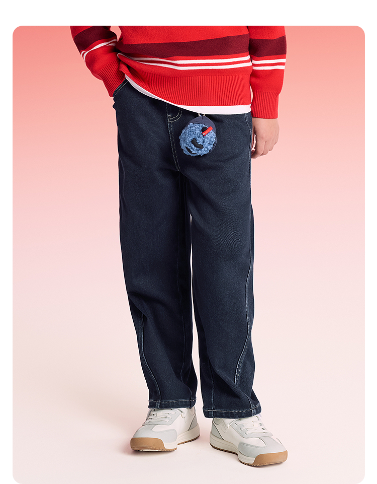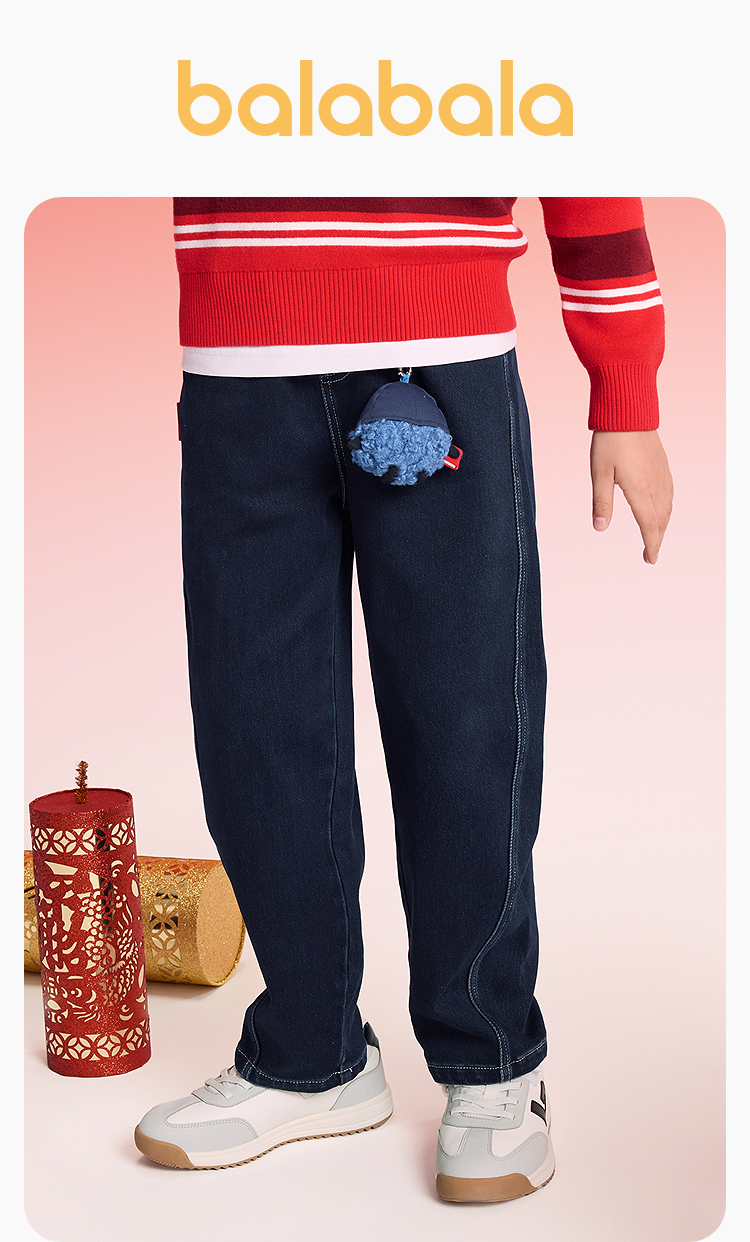 【balaOne】巴拉巴拉童装儿童裤子男童2025新款春秋装加绒牛仔裤