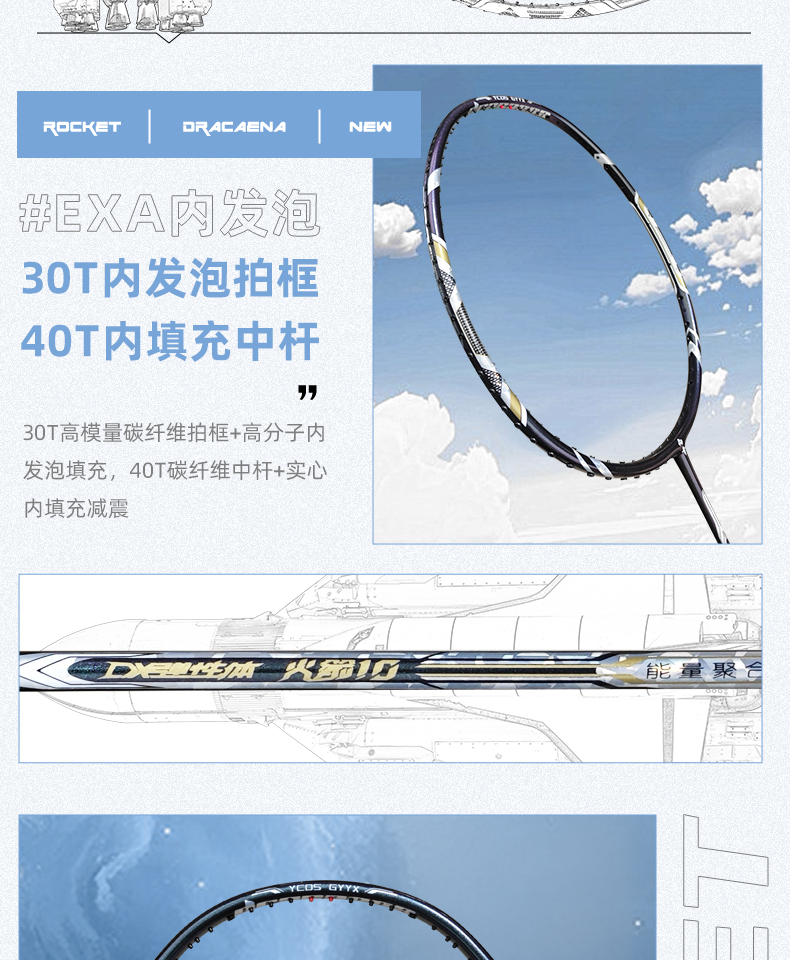 国羽严选新款正品耐用全碳素纤维超轻火箭10专业攻守兼备系列单拍