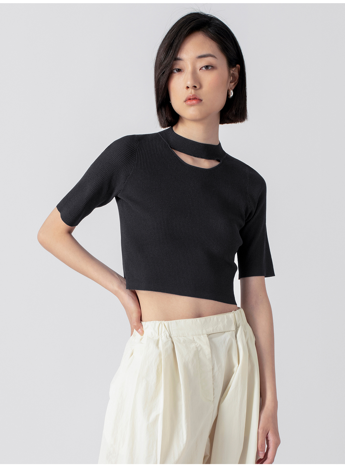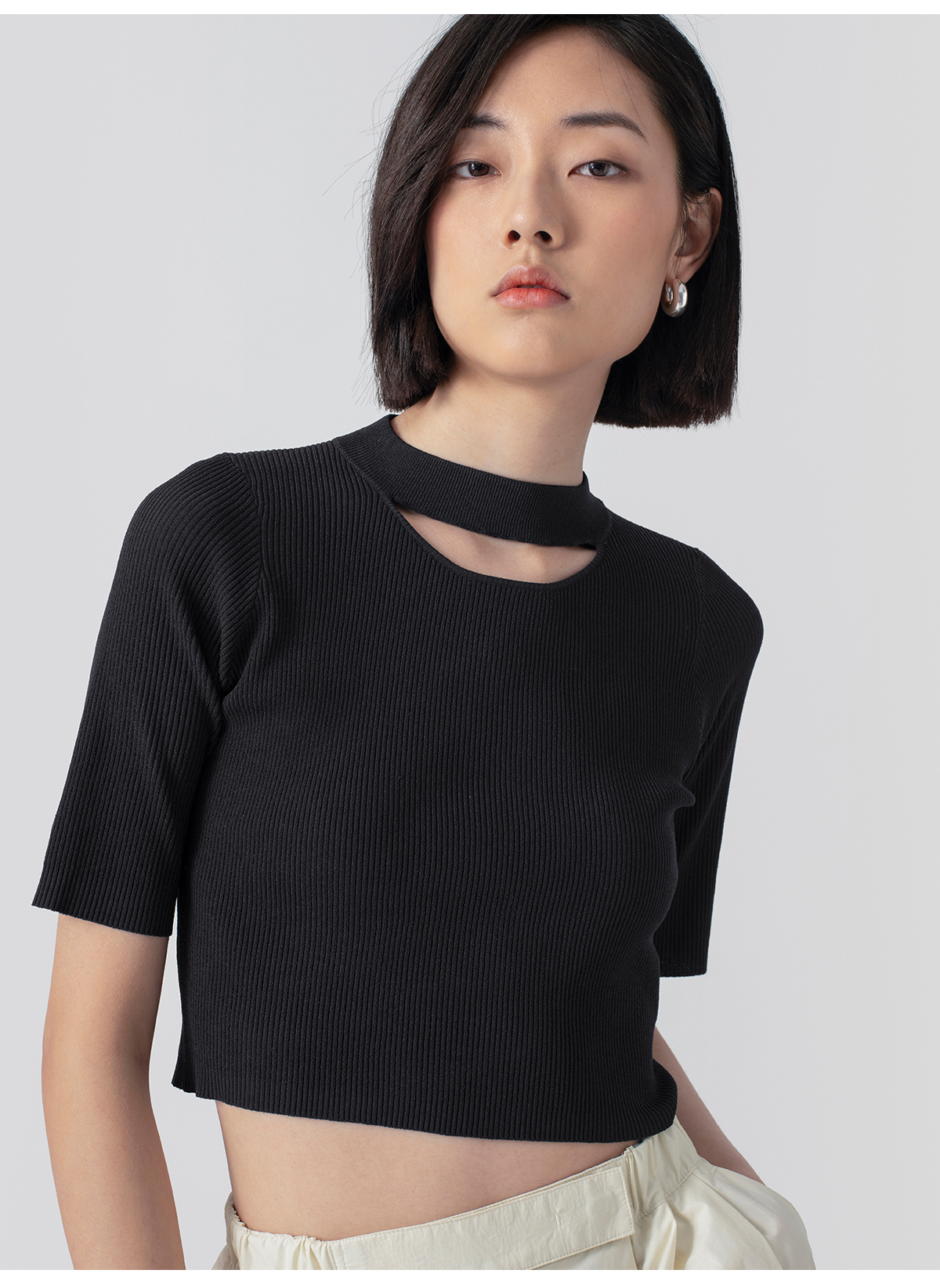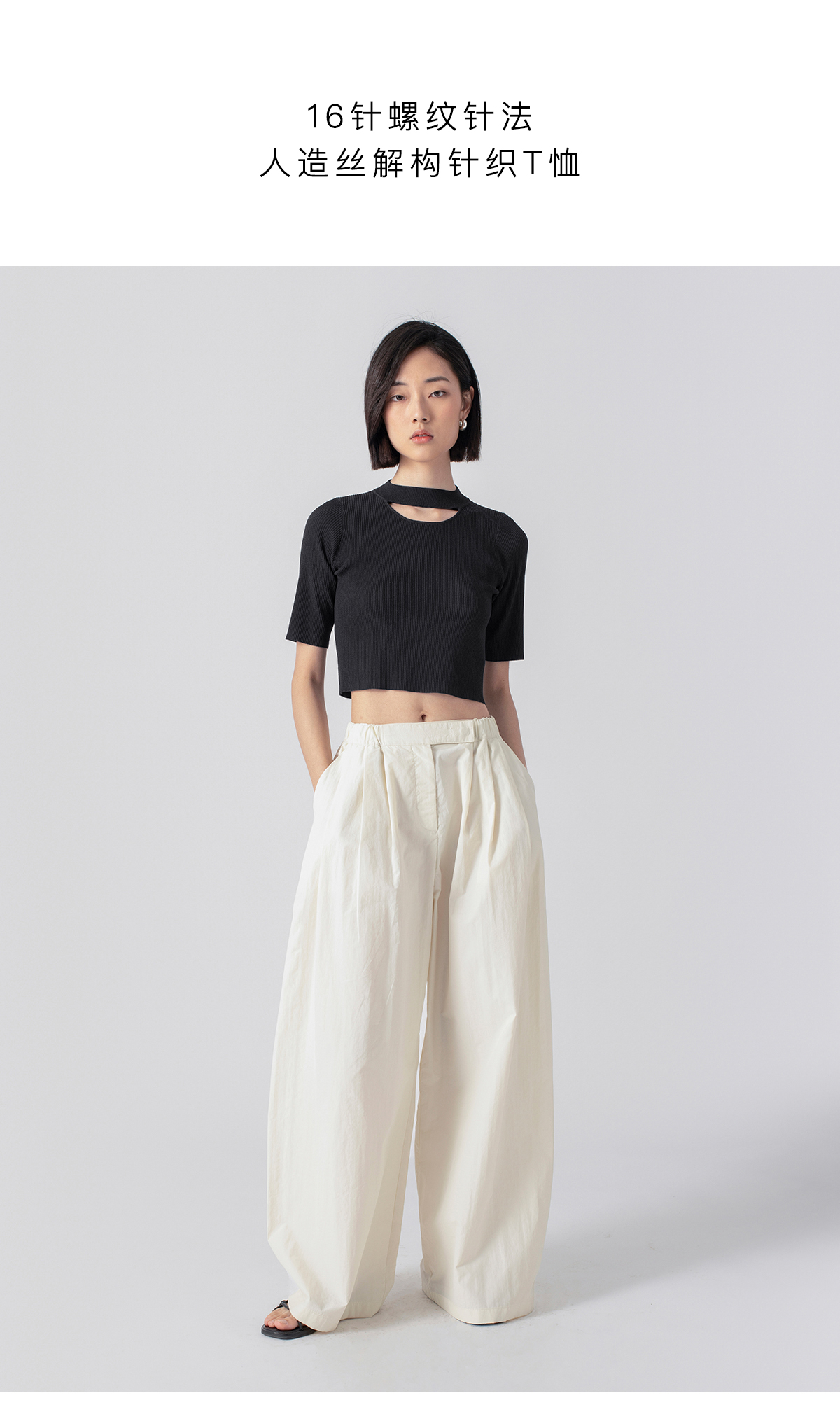 322工房解构美学人造丝开口笑针织T恤2023春夏百搭短袖针织衫B035