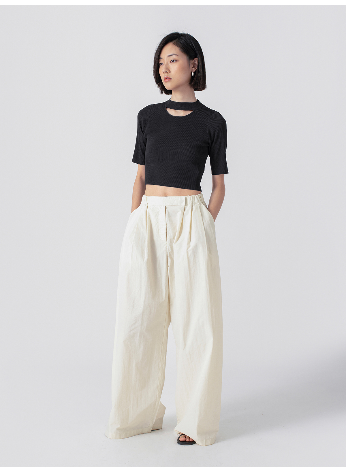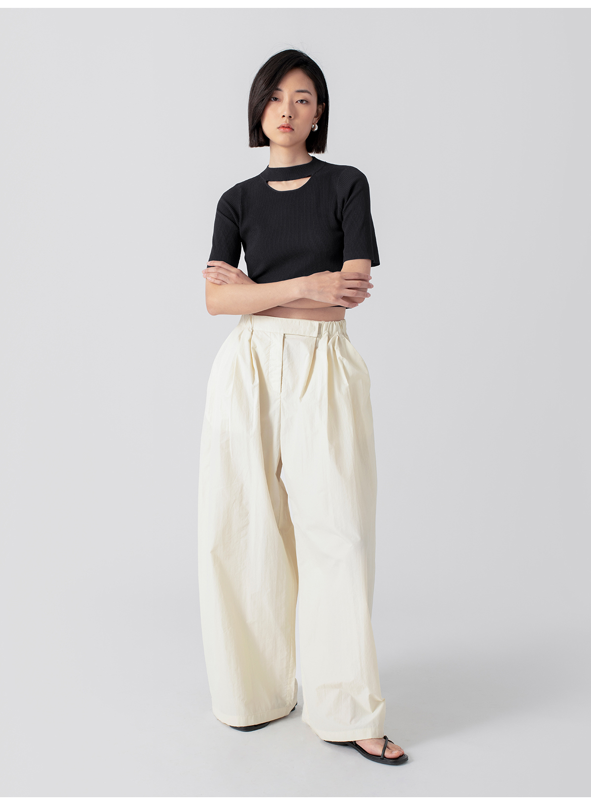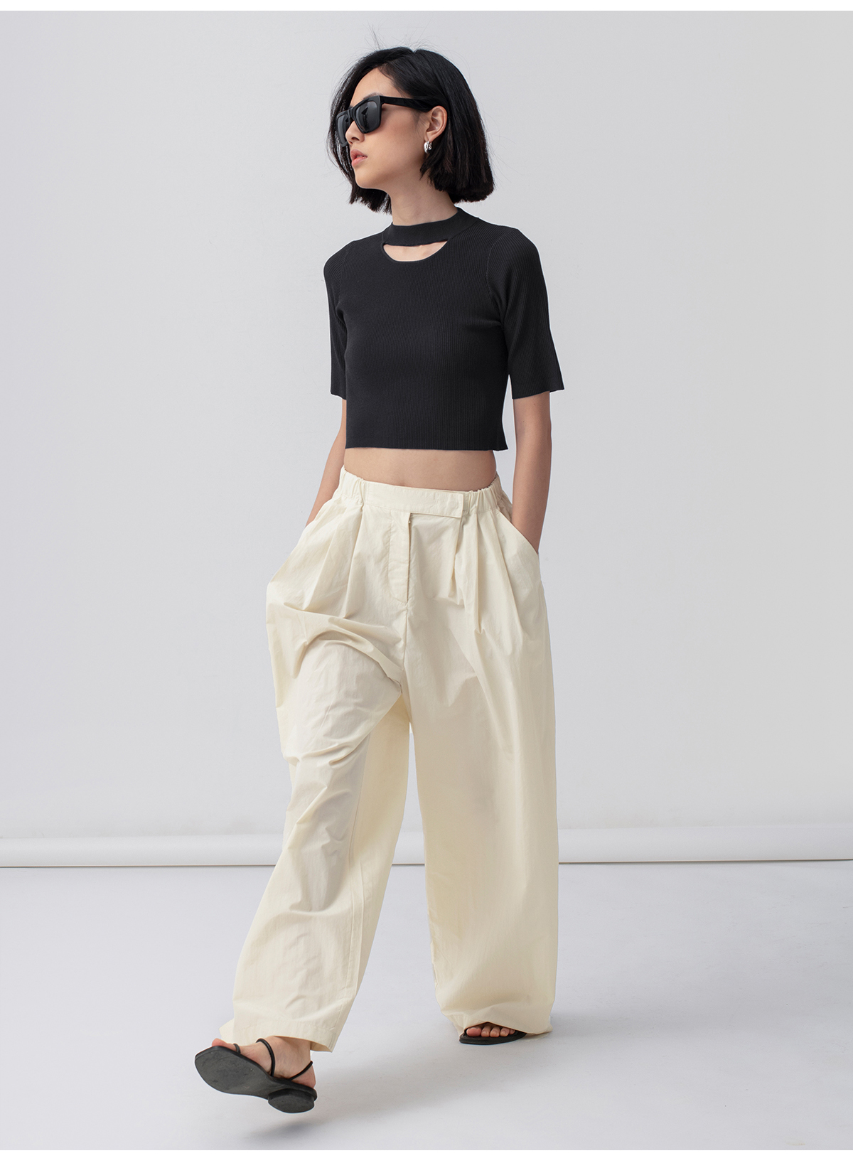 322工房解构美学人造丝开口笑针织T恤2023春夏百搭短袖针织衫B035