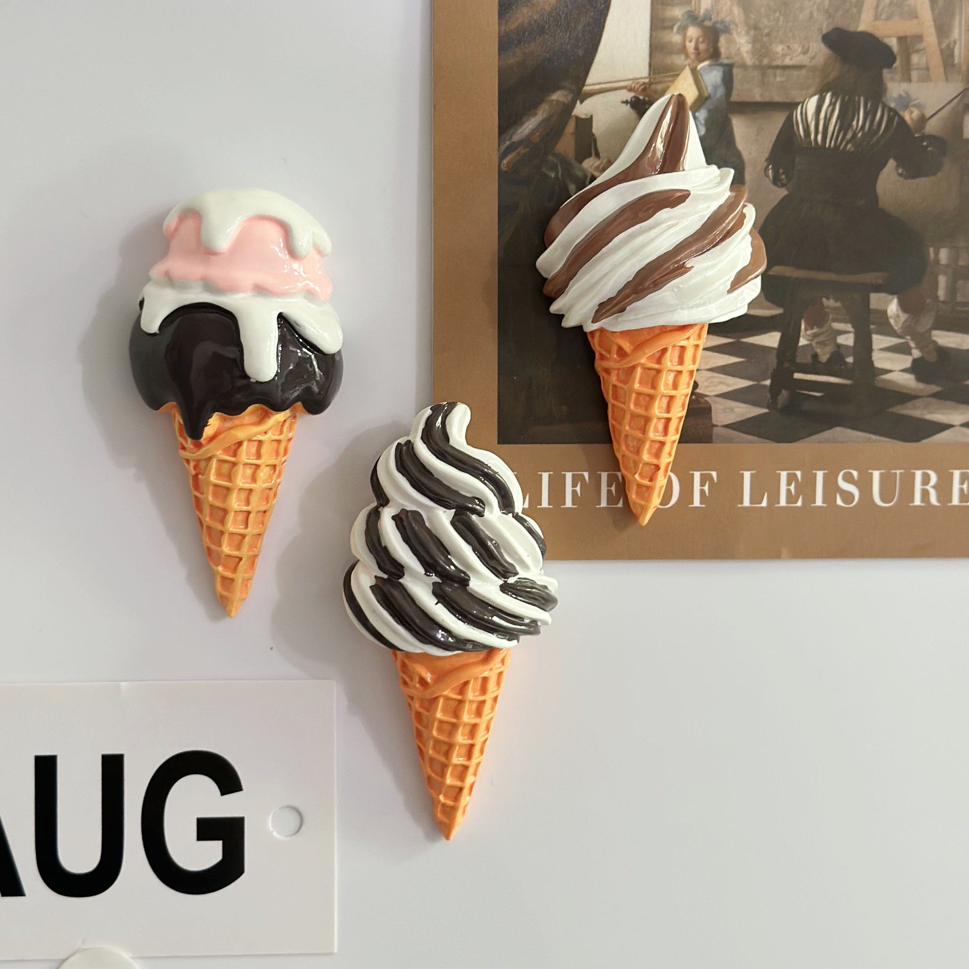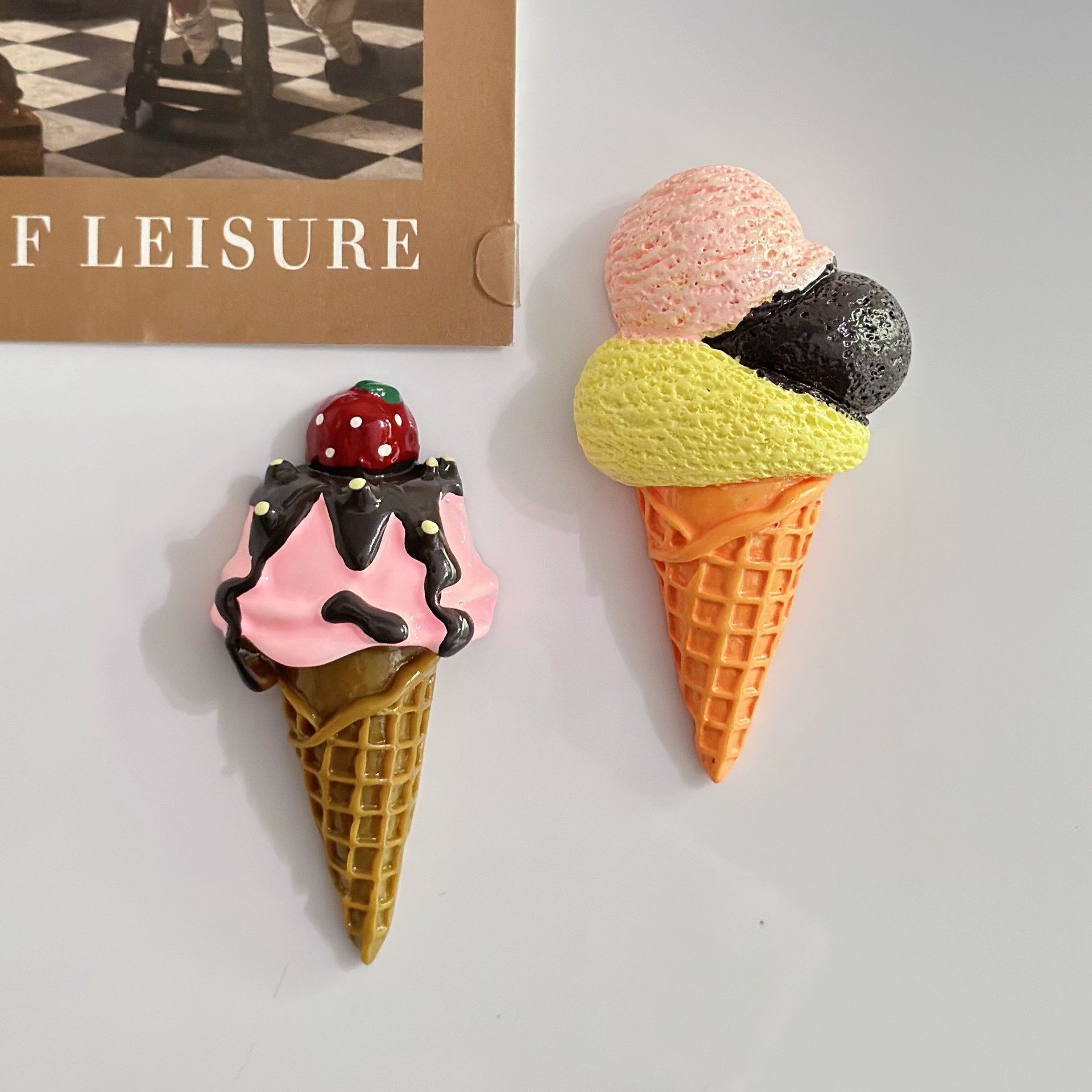 仿真可爱冰淇淋食玩冰箱贴 磁性贴大合集亮面磨砂冰淇淋留言板装