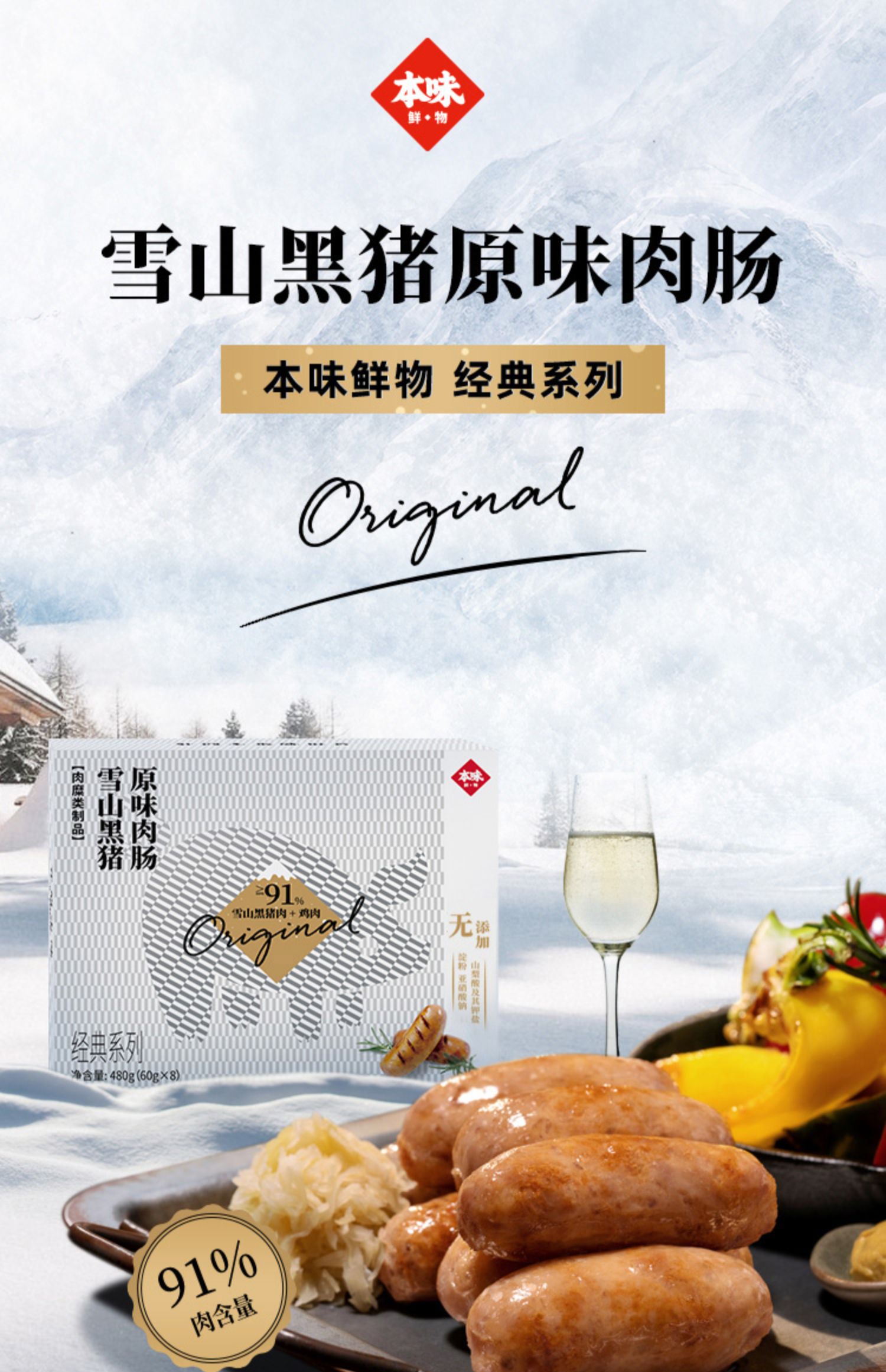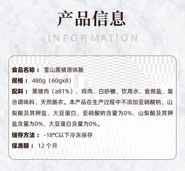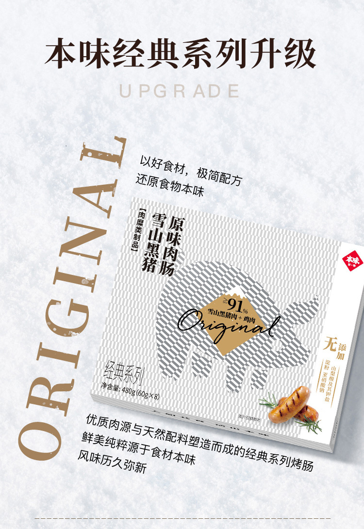 本味鲜物雪山黑猪烤肠黑胡椒肉肠芝士香肠480g*2盒装