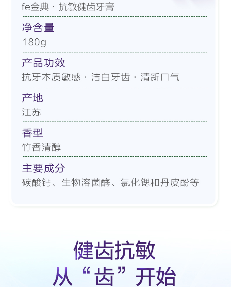 fe金典·抗敏健齿牙膏180g 竹香清醇52005-A