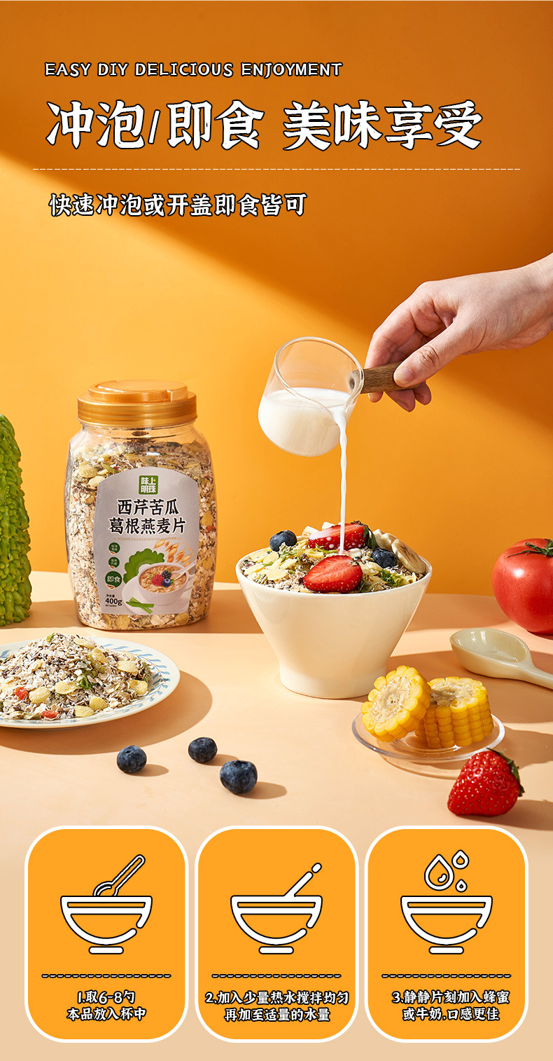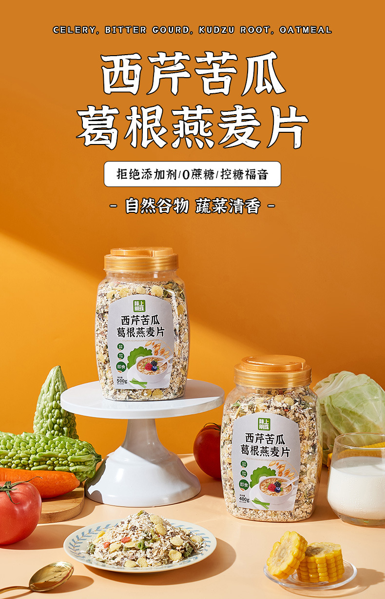 【第2罐立减10元❗️苦瓜芹菜葛根燕麦片】真虚自然谷物,营养美味健康无负担,早餐代餐即食燕麦片,无糖健身饱腹食品L