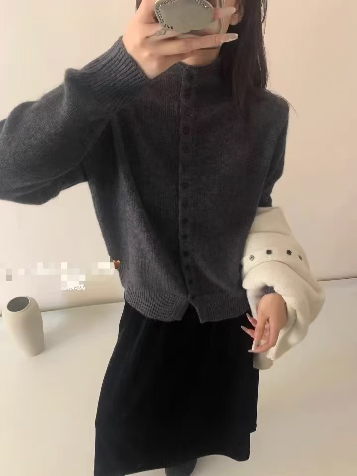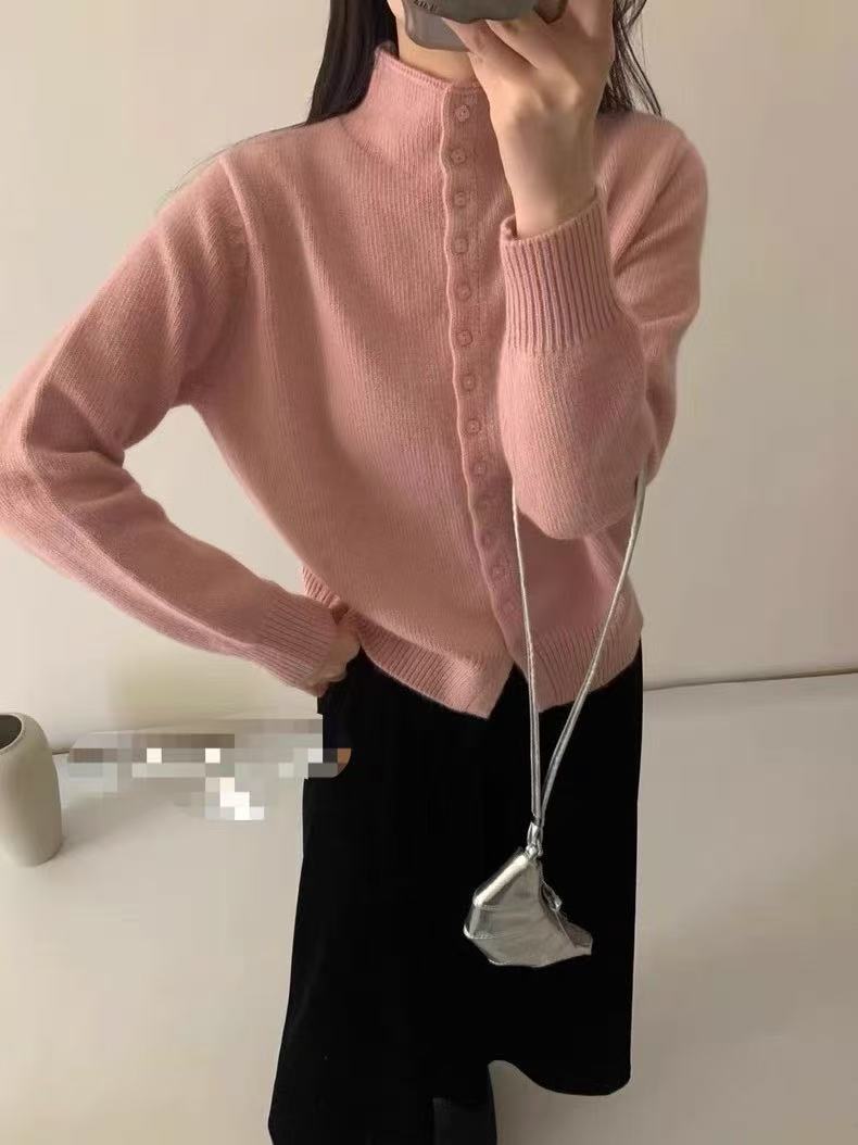 【YW】无忧购复古软糯慵懒风针织衫高级感红色单排扣高领毛衣女冬8139(截单后3-5天发货)