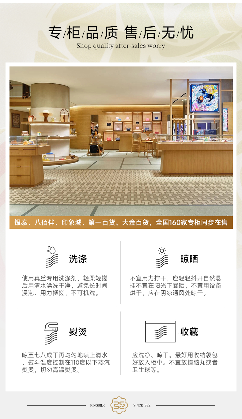 1.真丝娇嫩,建议配合专用洗涤剂(没有的话洗发水亦可)手洗,不要机洗。
