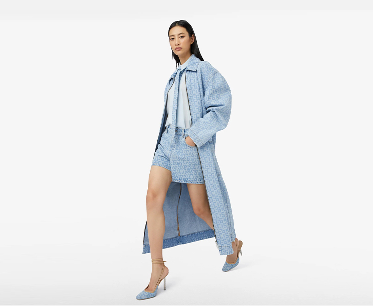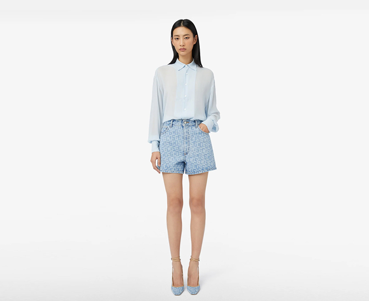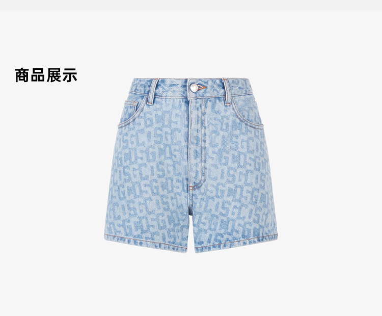 GCDS 女士字母徽标印花棉质休闲牛仔短裤 浅蓝色 A1CW3100DA275