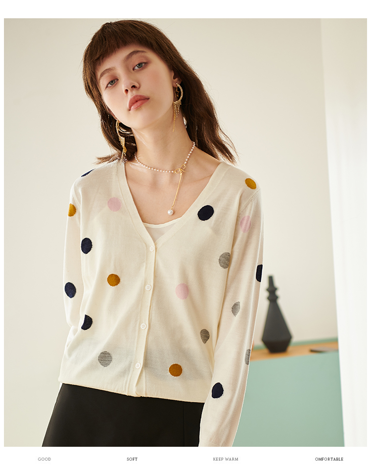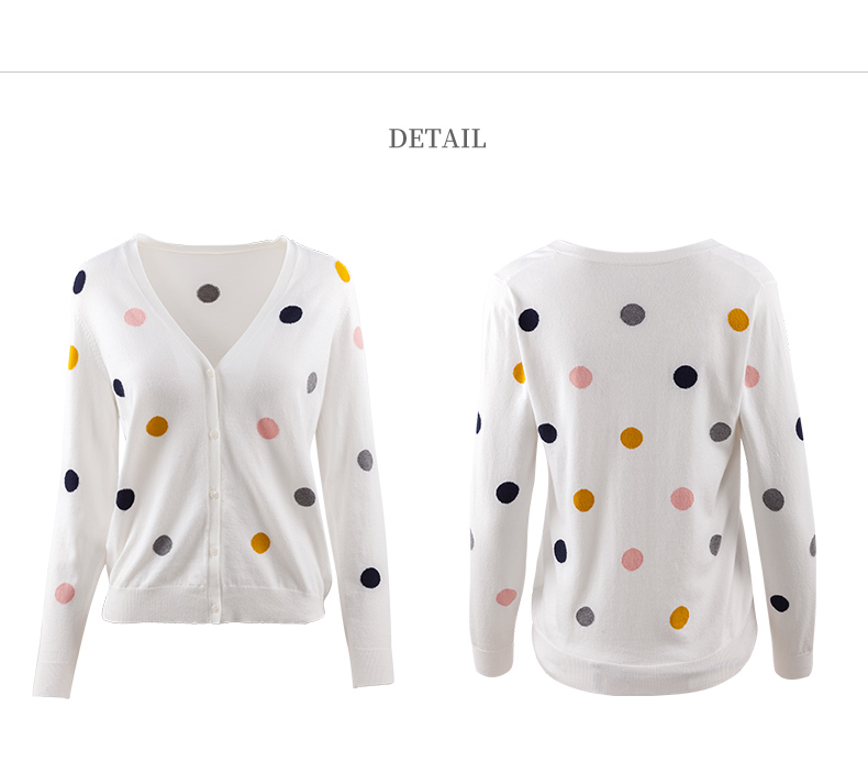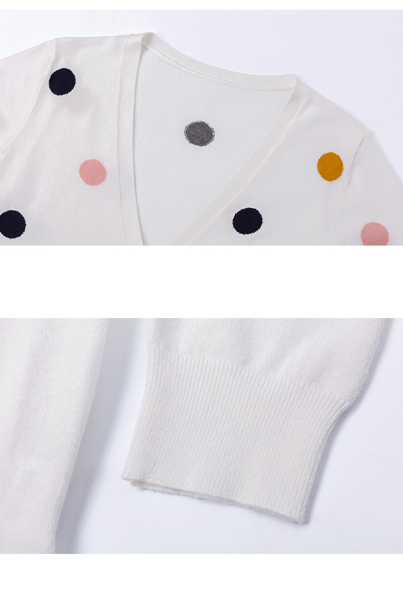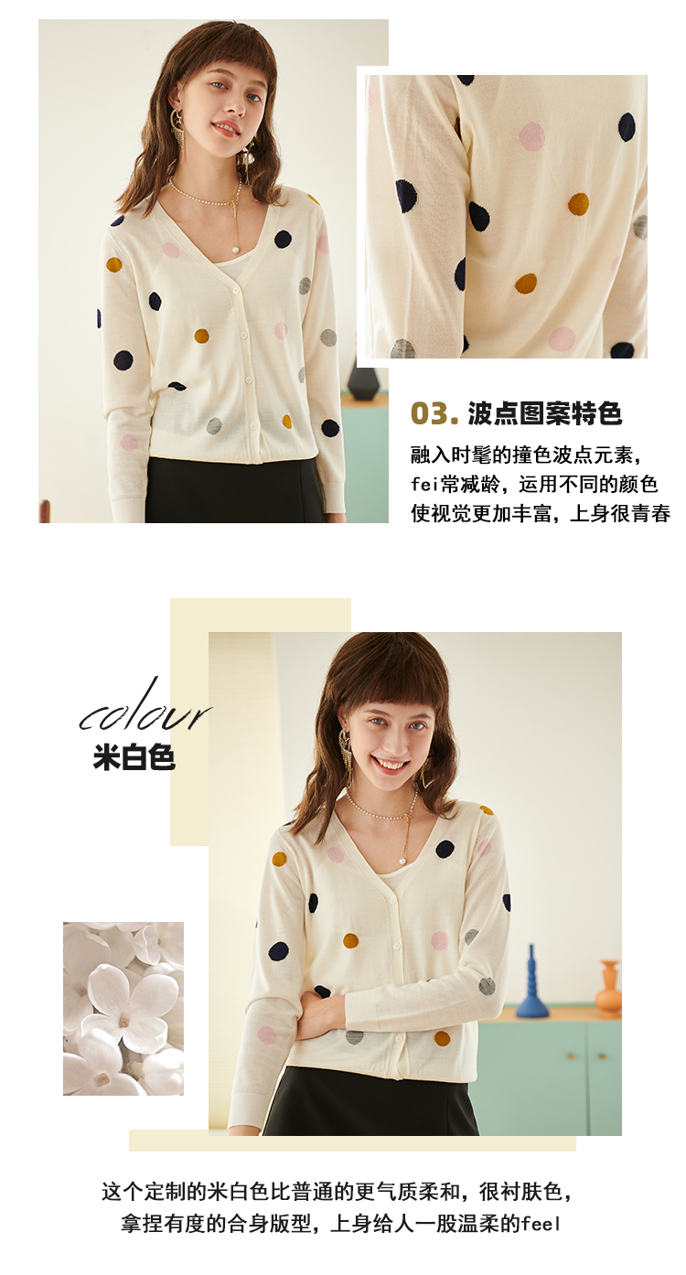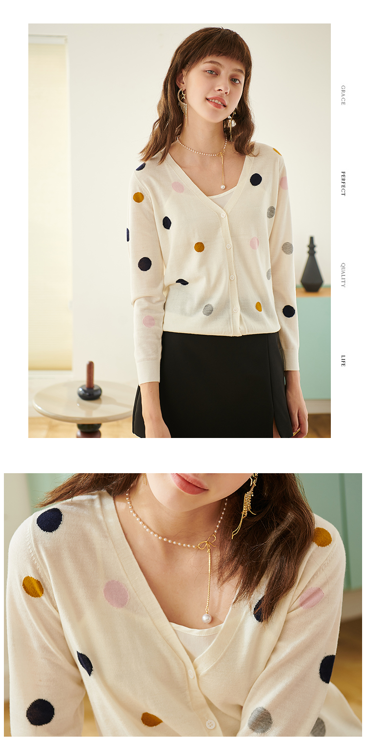 欧芮儿春新款长袖V领开衫毛衣女气质内搭打底波点针织衫