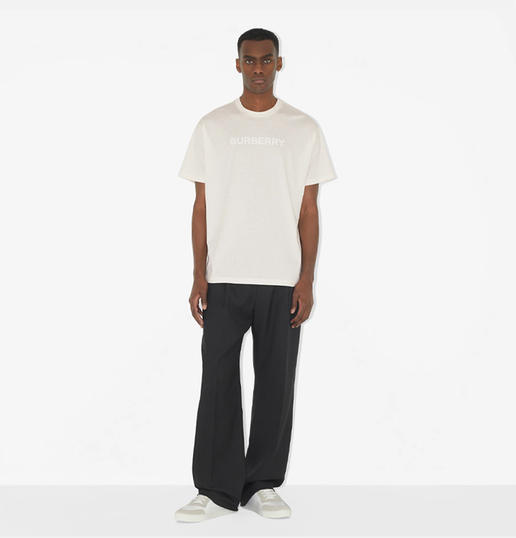 BURBERRY 巴宝莉 男士字母徽标印花平织棉质圆领短袖T恤 米白色 8068709 A4187