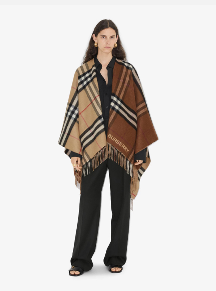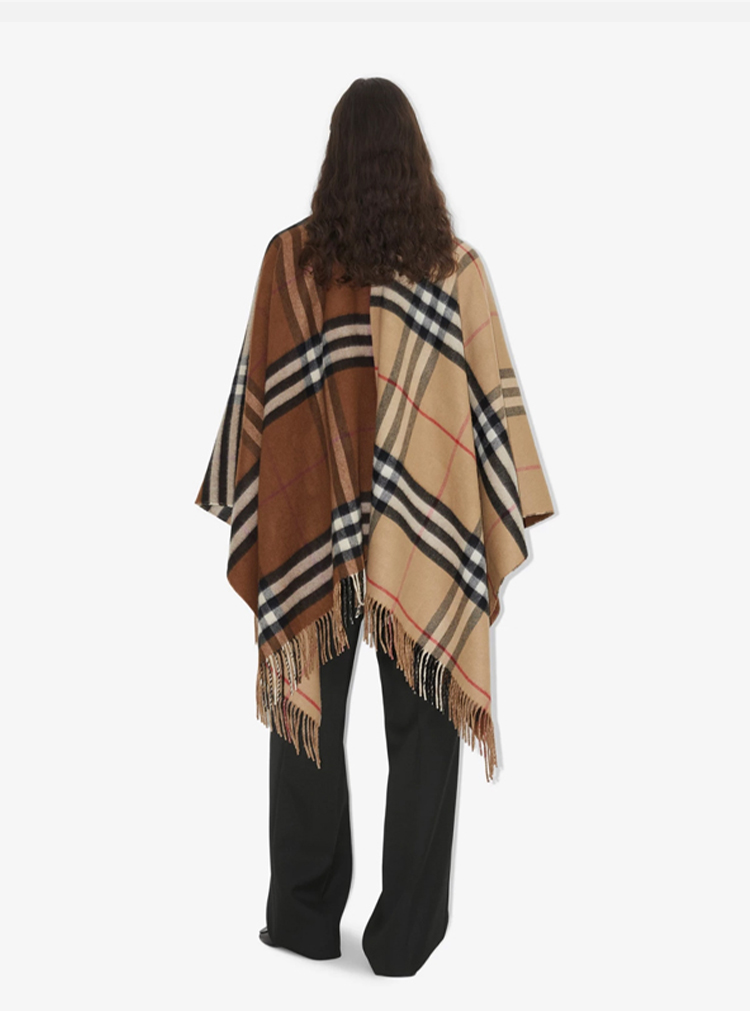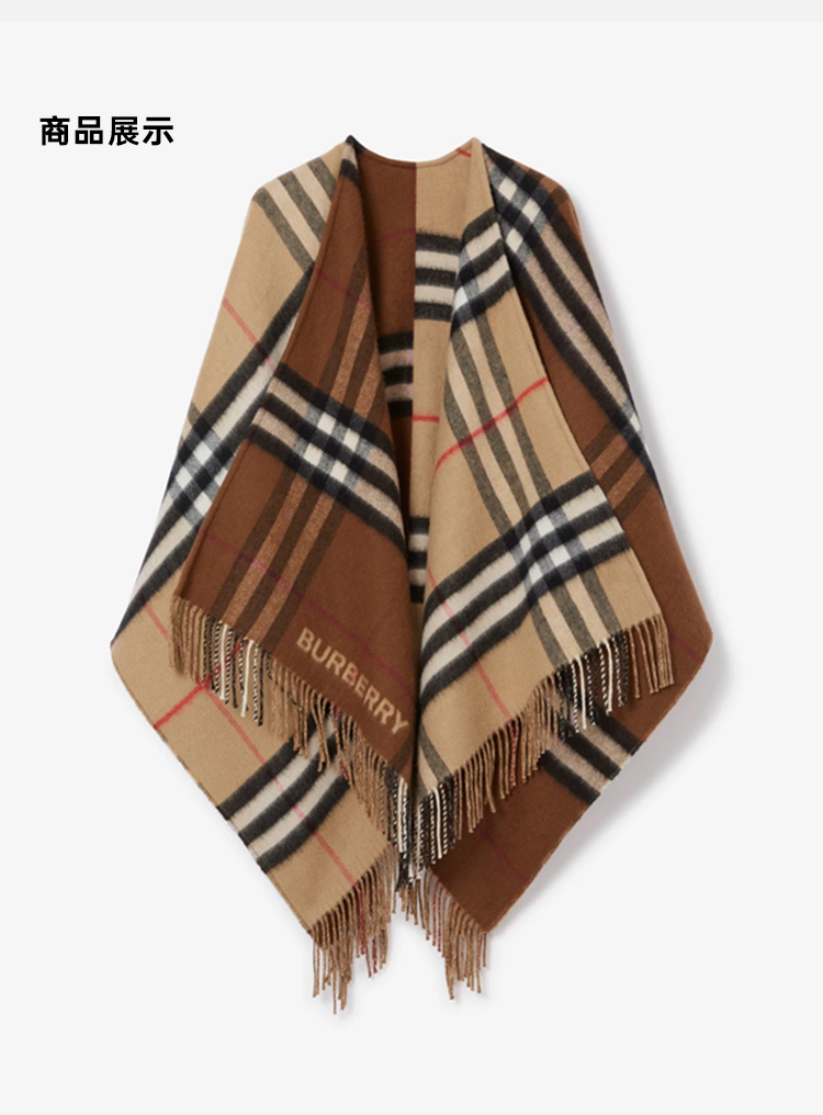 【三】BURBERRY 巴宝莉 女士对比格纹羊毛羊绒斗篷 格子 8059406 A7026