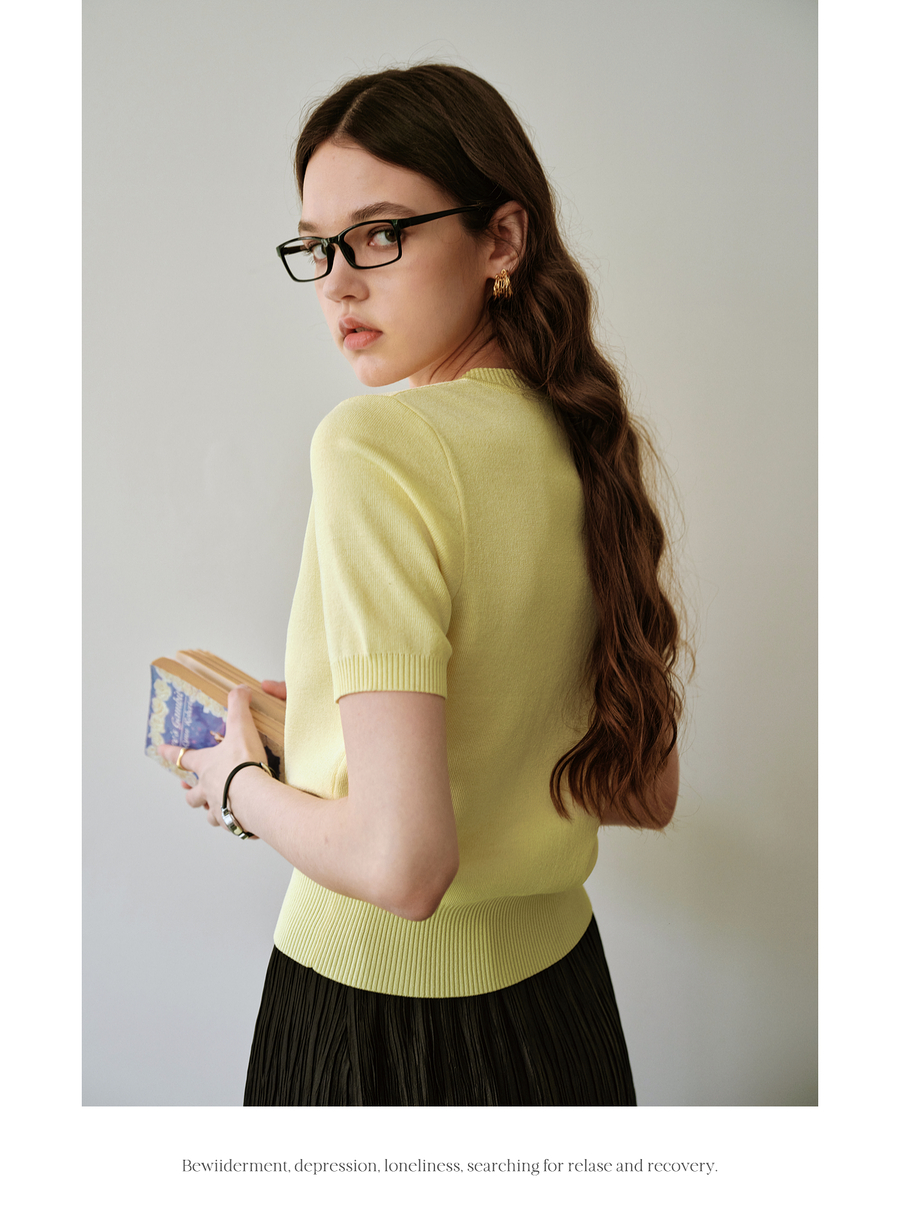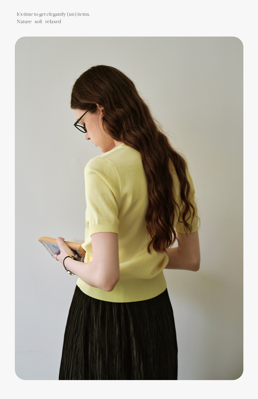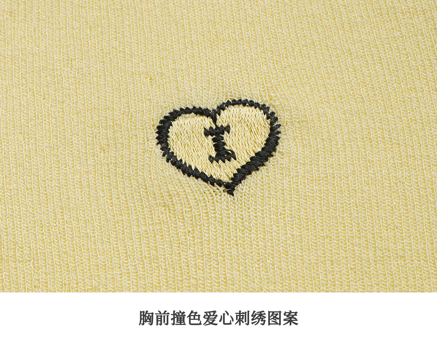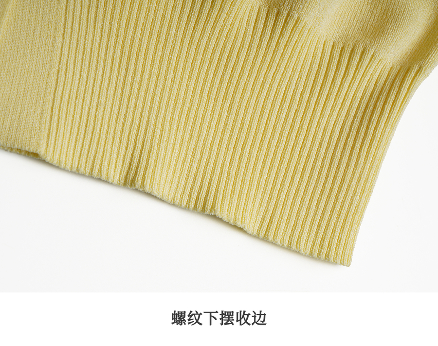OLrain欧芮儿黄色刺绣毛针织开衫女夏季2025新款V领简约短袖上衣