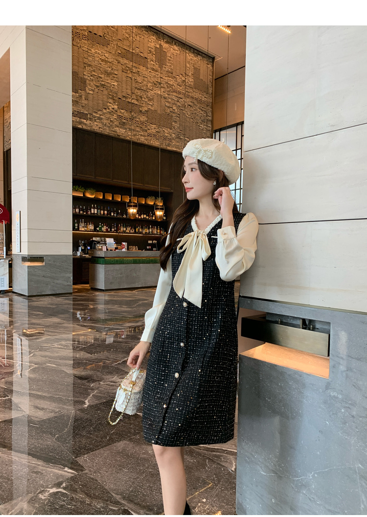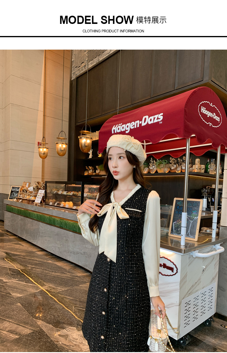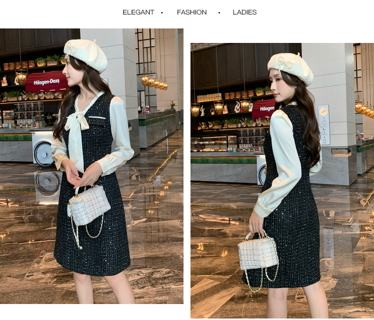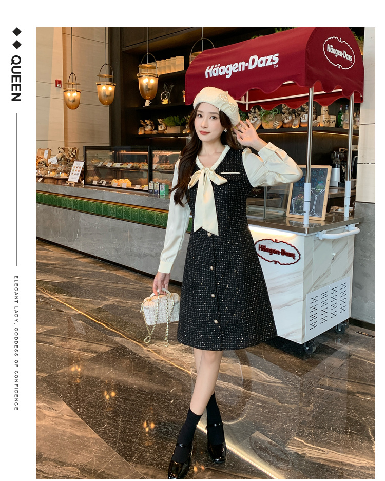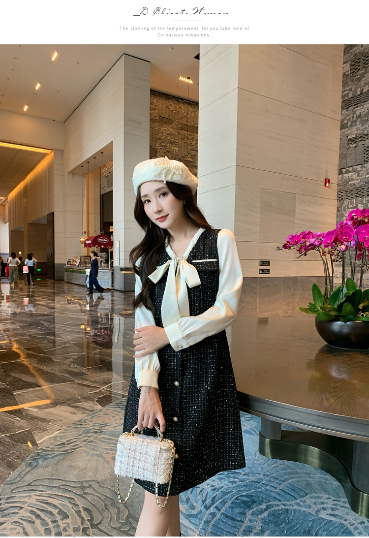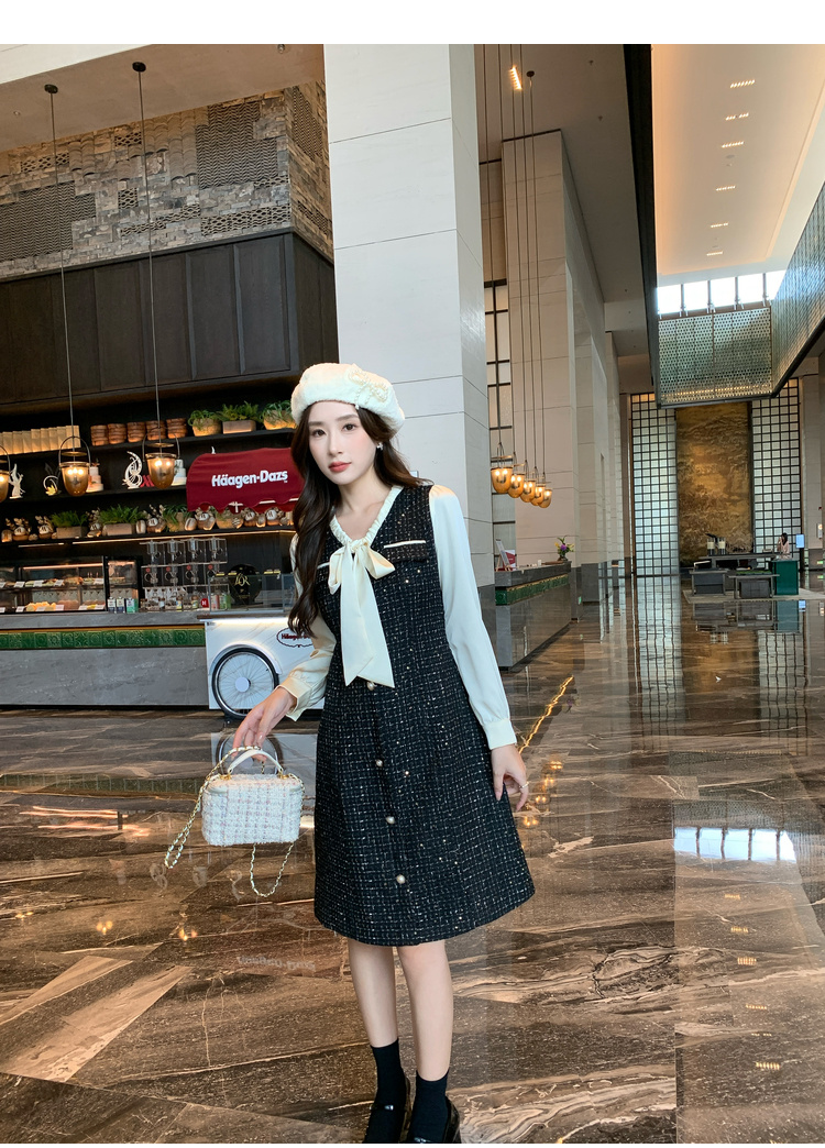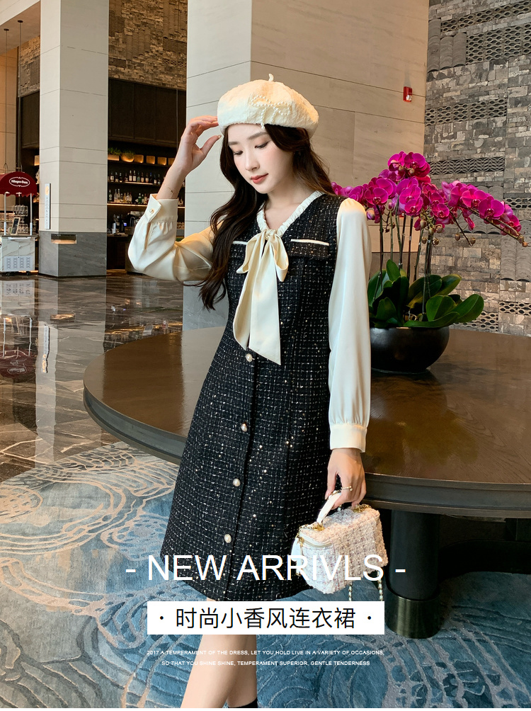 奢姿大码女装2024冬季减龄系带领小香风拼接连衣裙胖妹妹时尚裙子
