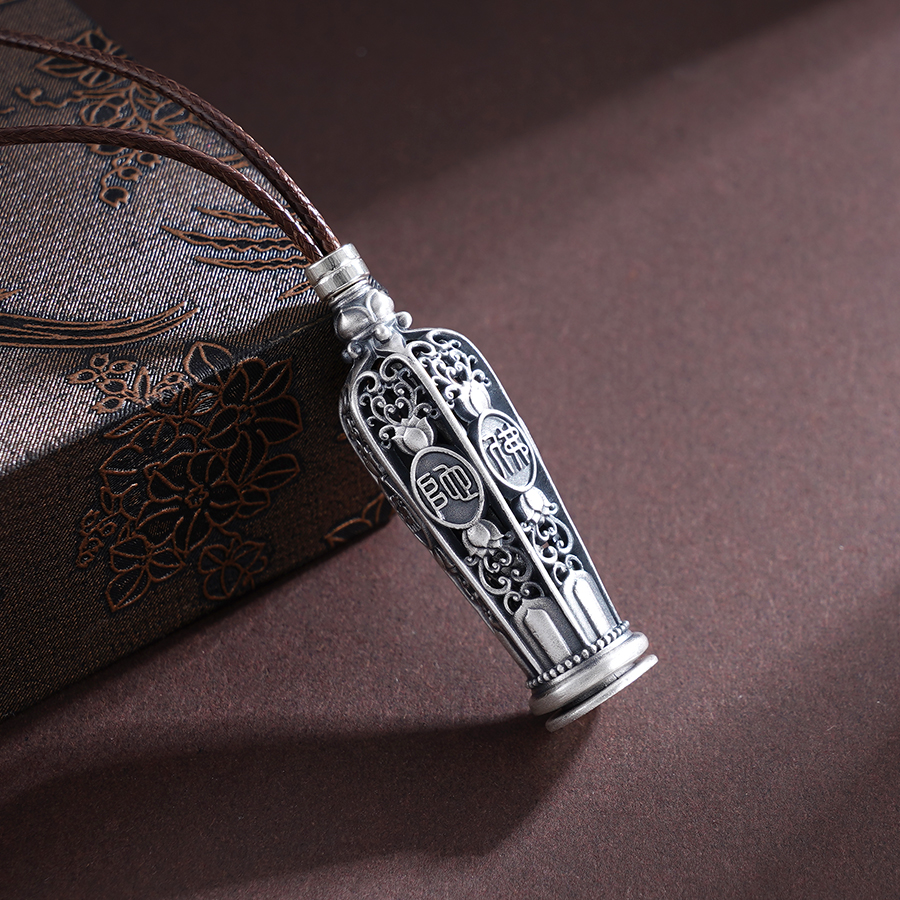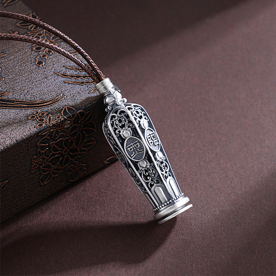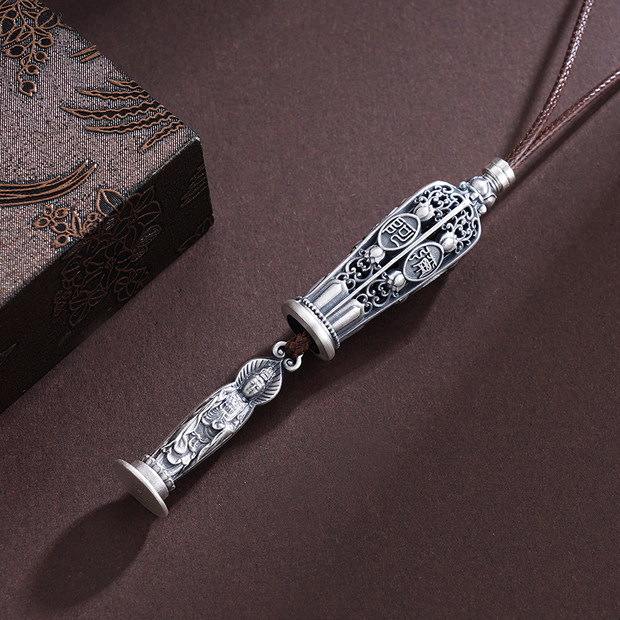 【寓意】:古法镂空吊坠,内藏可抽出的观音像,宛如一份神秘祝福。岁月沉淀的韵味尽显其中,护佑佩戴者岁岁平安,富贵年年。