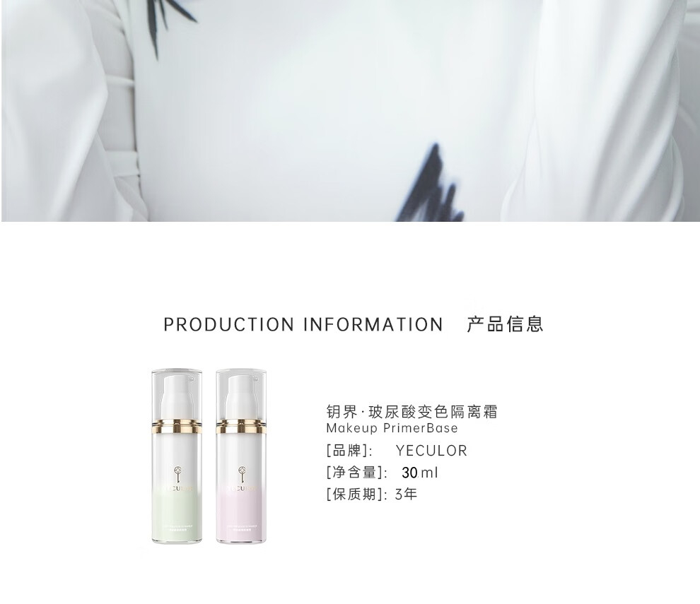 YECULOR钥界玻尿酸变色隔离霜 30ml 【1#燕麦紫】【2#青草绿】