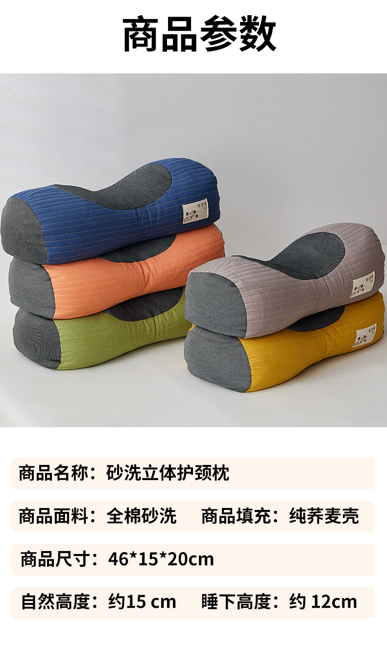加倍生活 全棉砂洗立体护颈荞麦枕 助眠舒压 舒适仰睡 天然荞麦壳填充 48小时发货