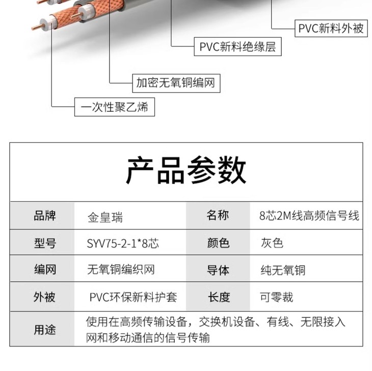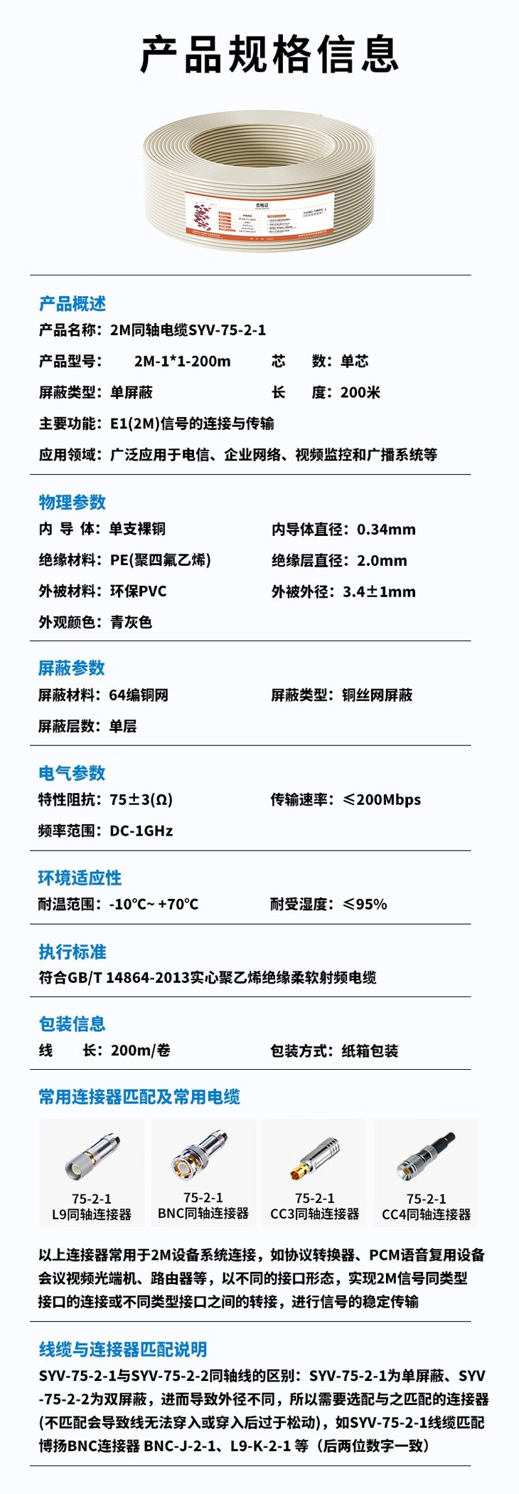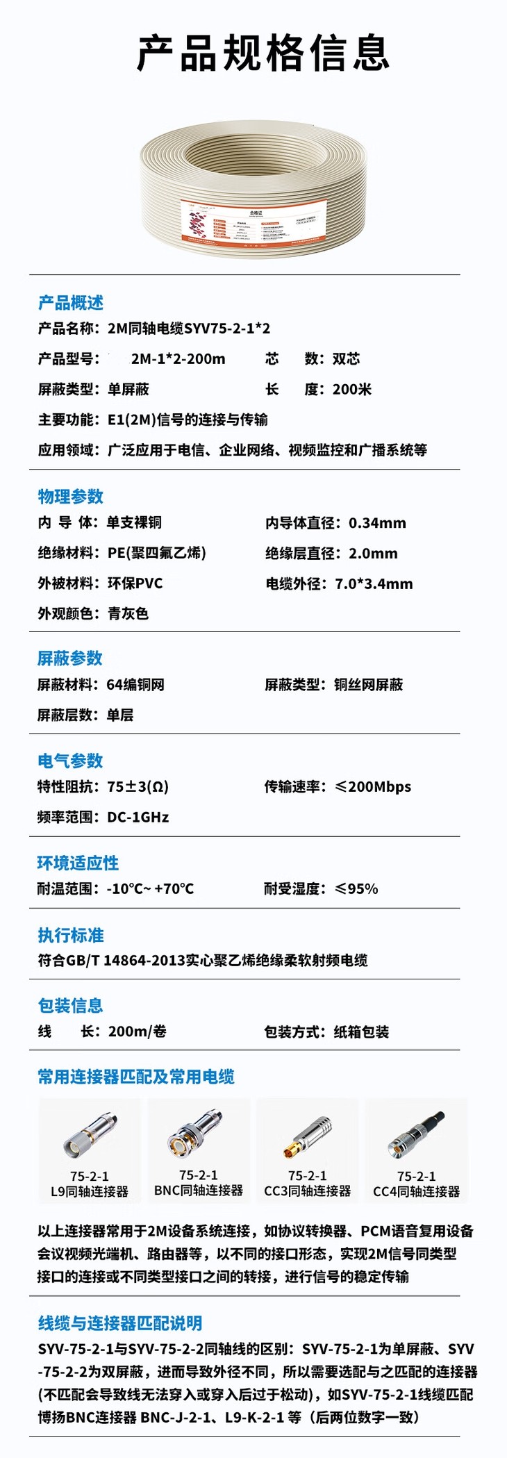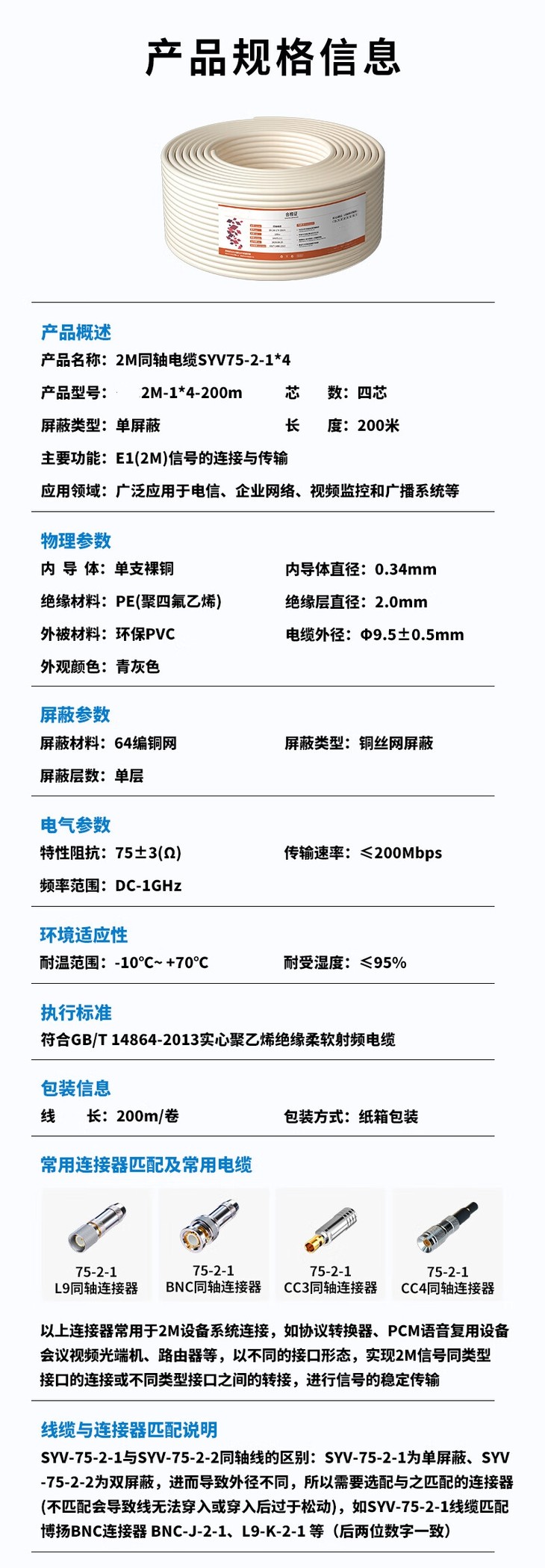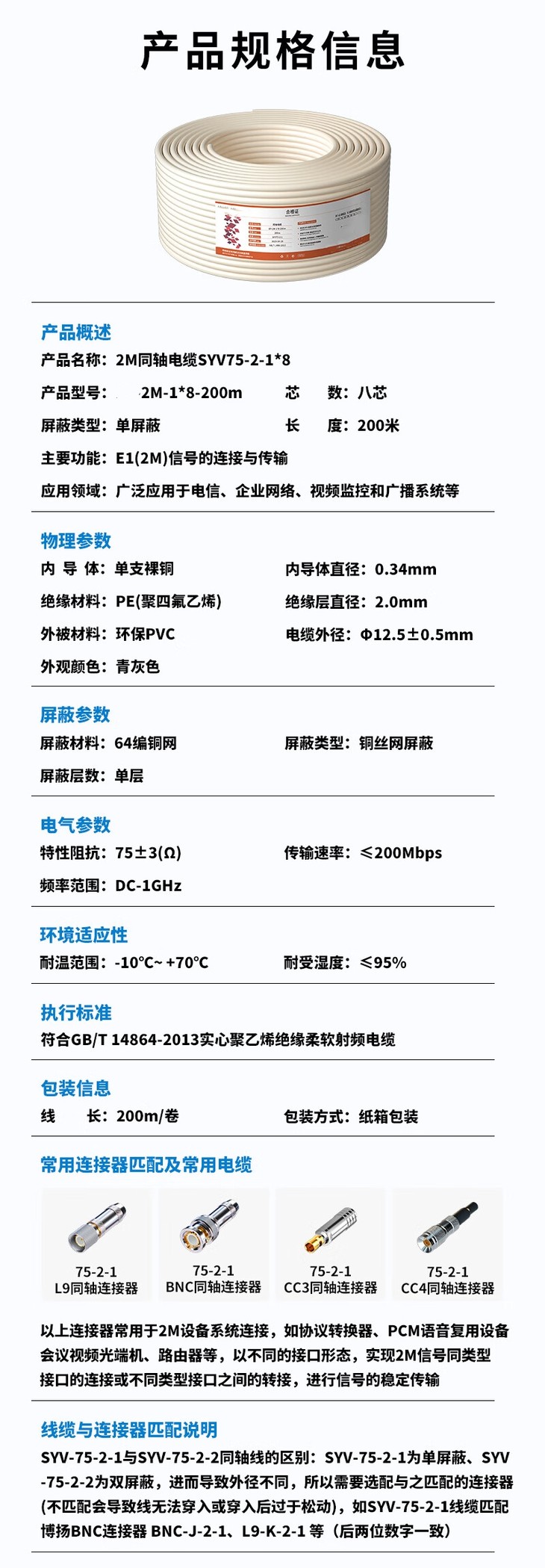 爆款★热销@【2M两兆E1同轴电缆】SYV75-2-1*1/2/4/816二四八十六芯二64编屏蔽无氧铜导体视频线国标射频DDF信号线/E1电缆 2M线 BNC插头 CC4 8芯2兆线通讯机房L9插头