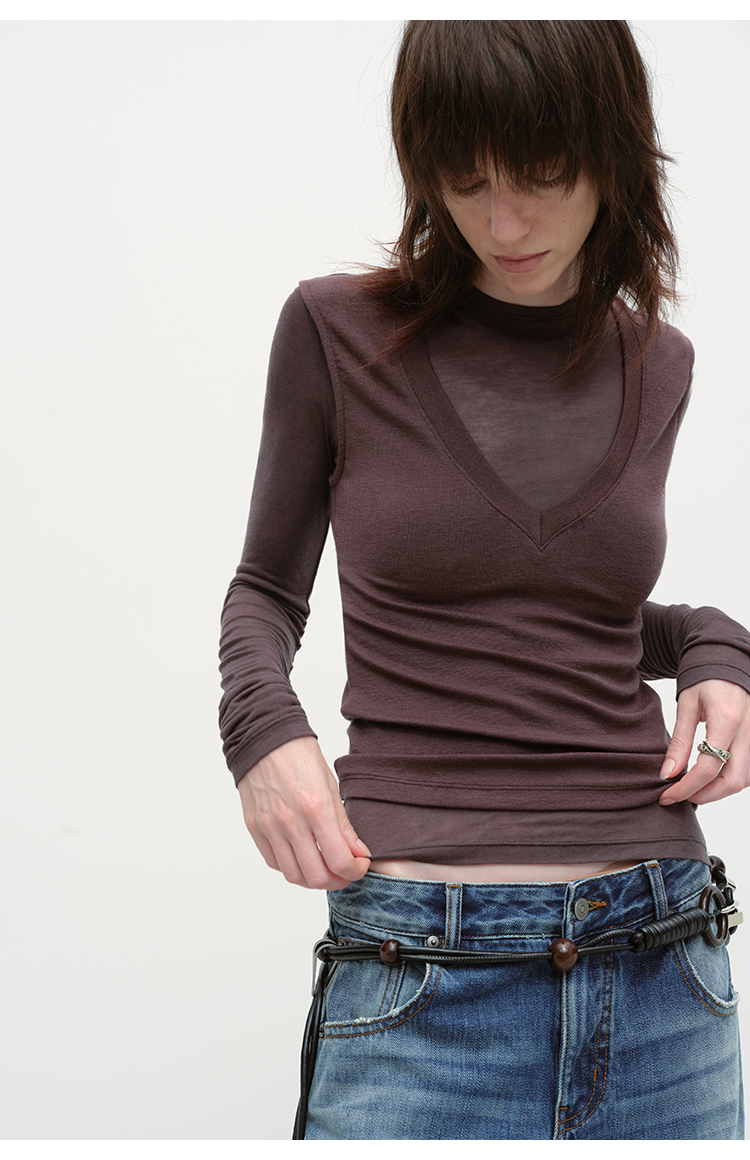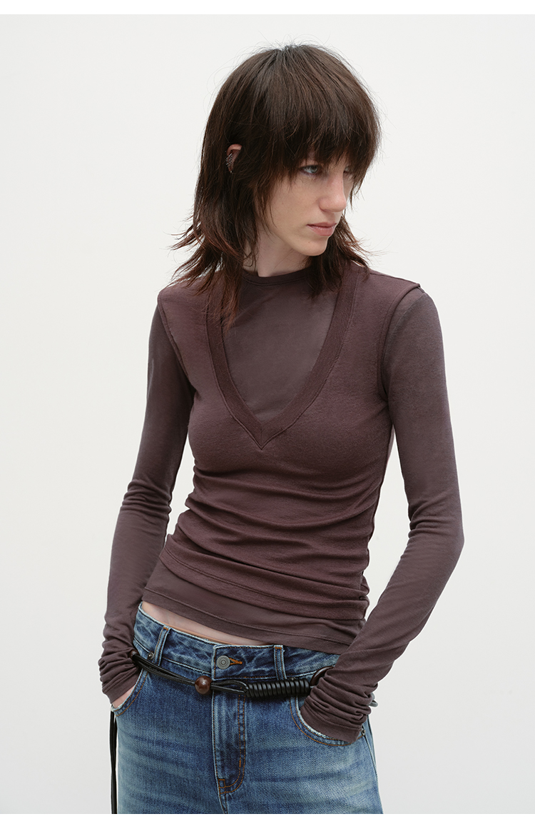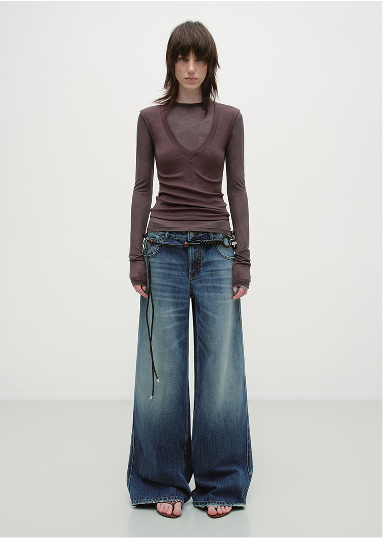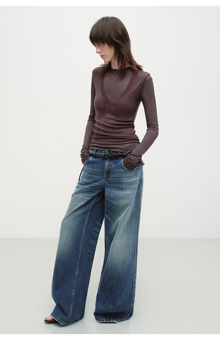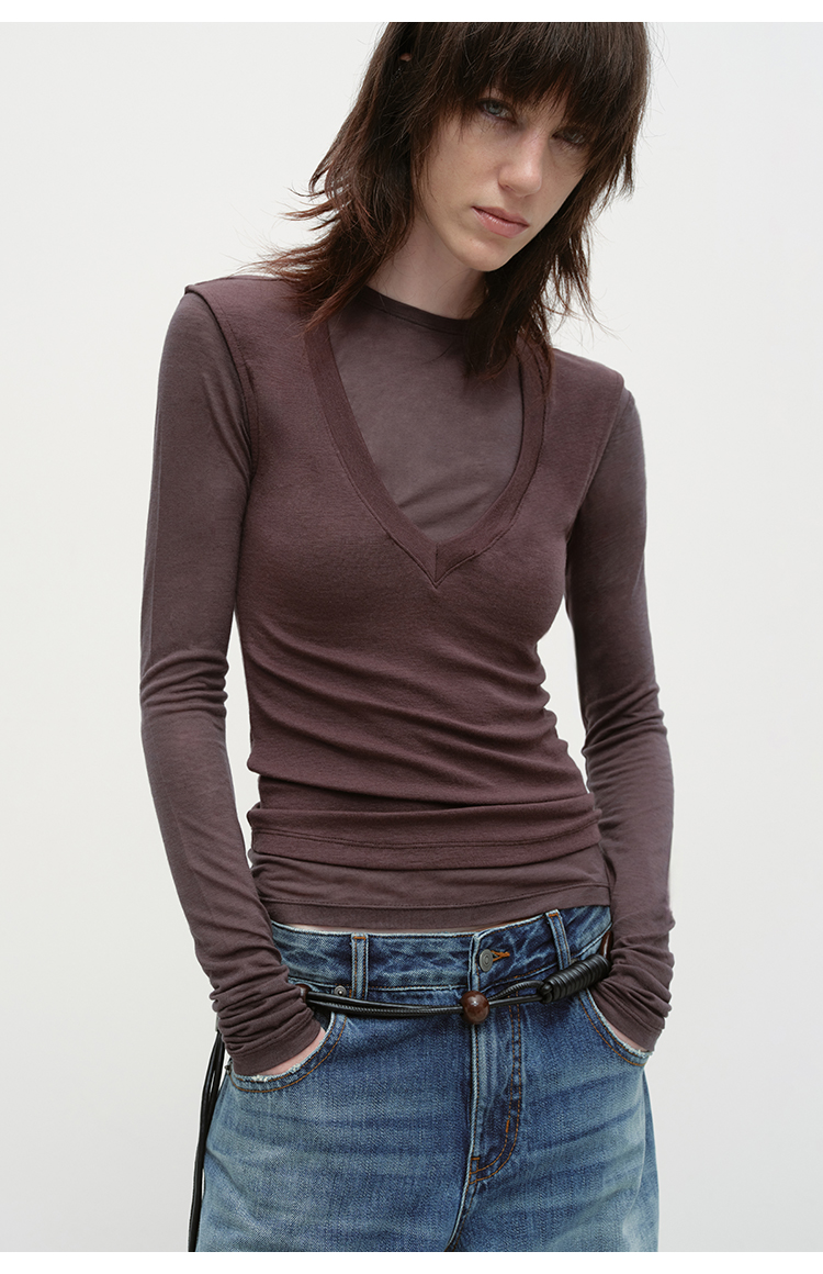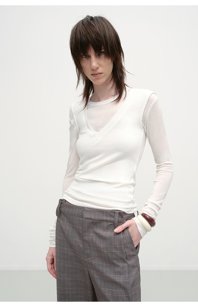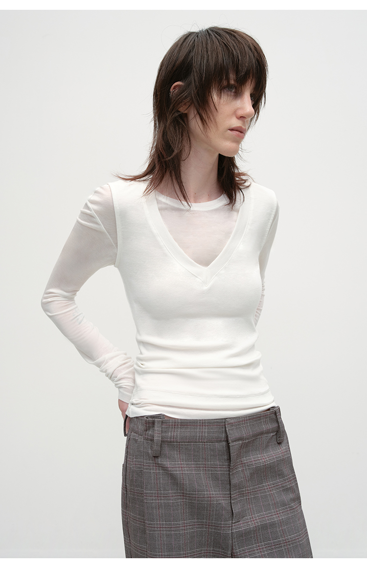 出逃赤岗西/25AWT176/莱赛尔修身羊毛T恤