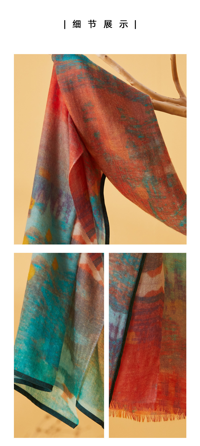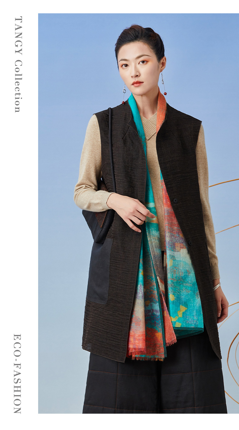 TANGY Collection/天意精品2021年秋冬新品原创印花羊绒围巾