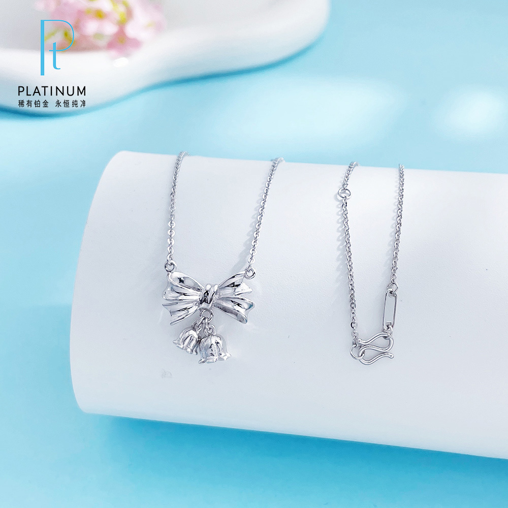 【限时8.8折】【线上铂金馆】PT950 #在逃公主 【国际铂金协会】铂金镂空在逃公主甜美少女心蝴蝶结铃兰花调节套链(ACPTTL00001)预售产品下单后不退款不退货不换货不补差价)