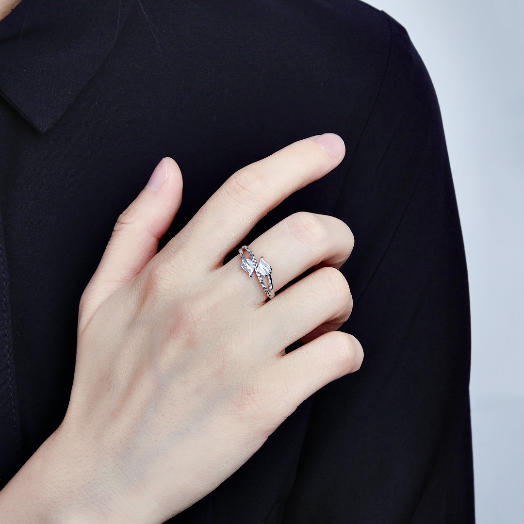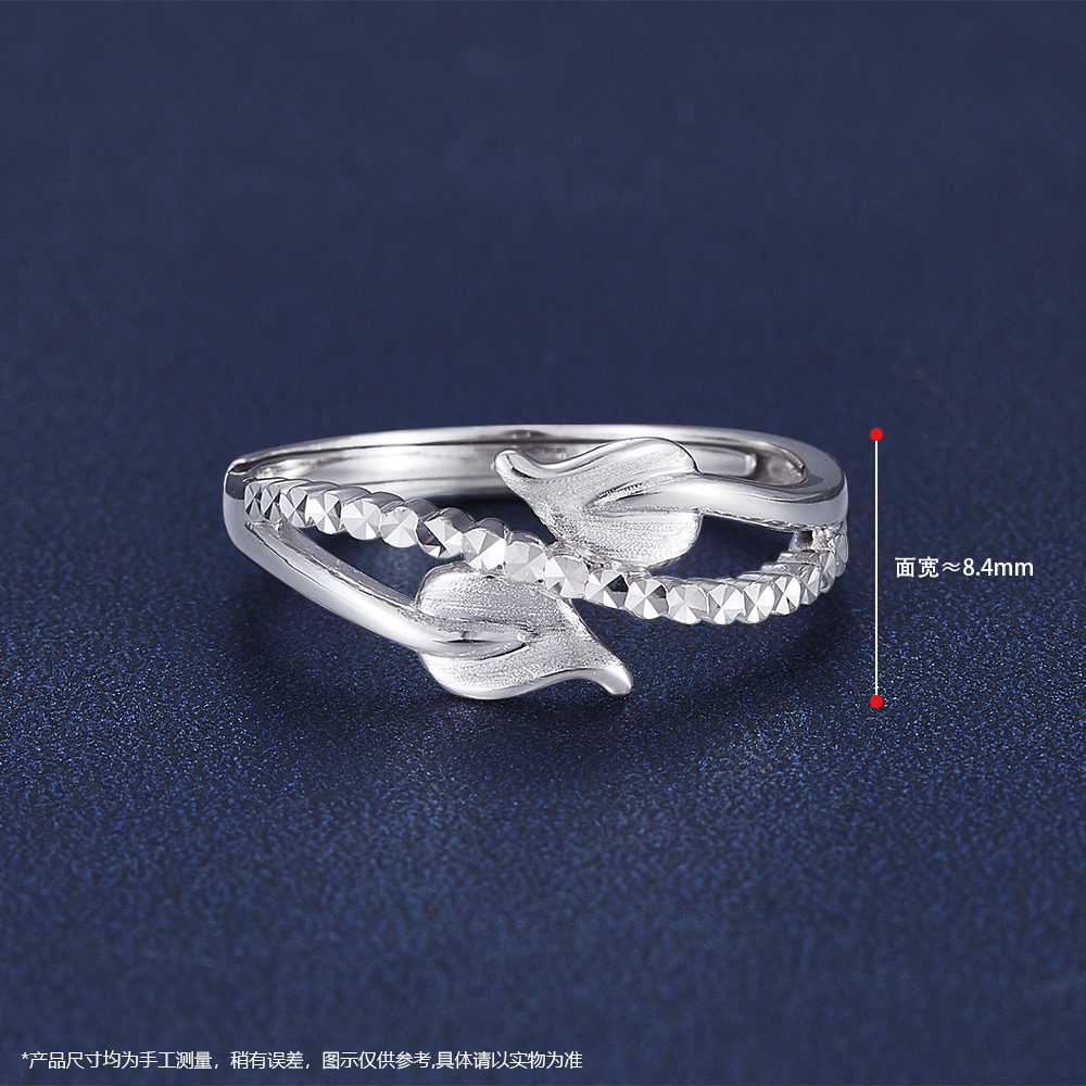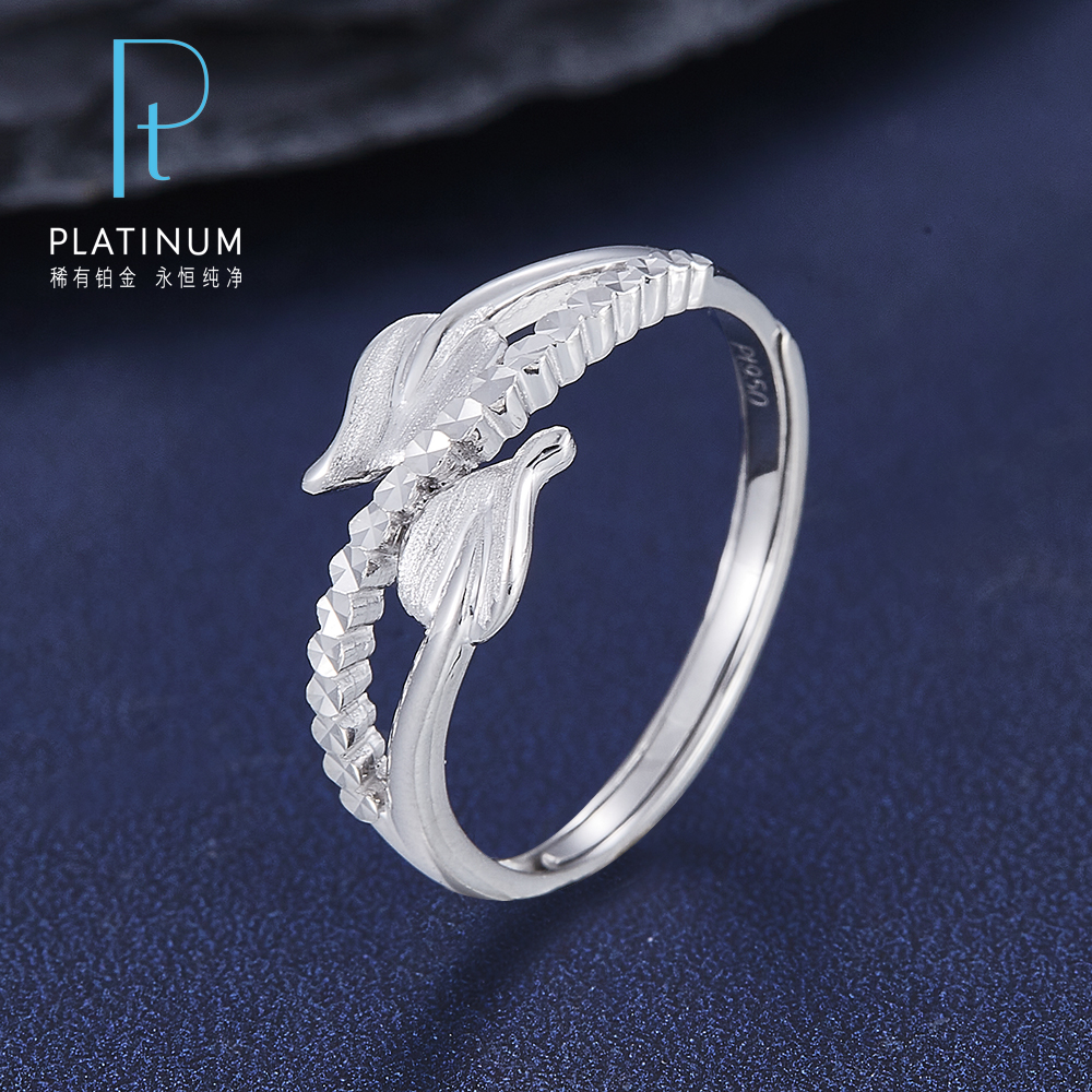 【线上铂金馆】PT950 【国际铂金协会】铂金双叶仿钻戒活口女戒(BJZ00063)预售产品下单后不退款不退货不换货不补差价)