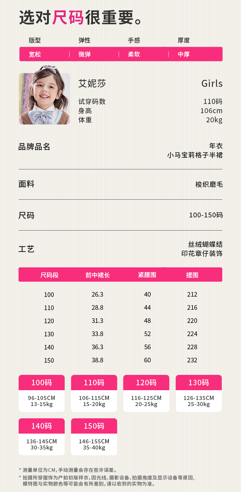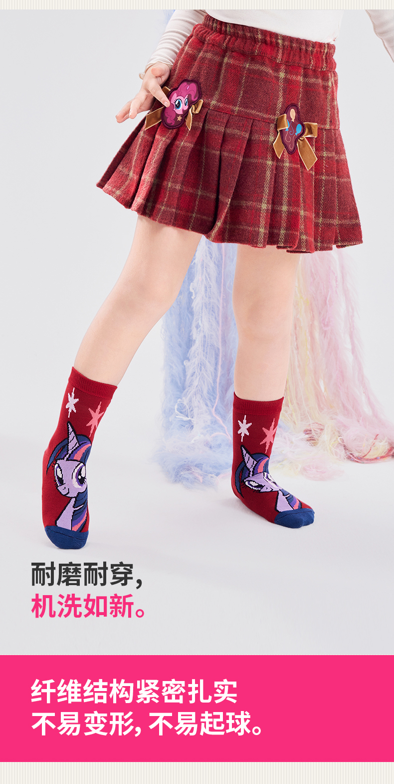 小马宝莉联名年衣半身裙秋冬新款女童卡通学院风小马宝莉格子半裙