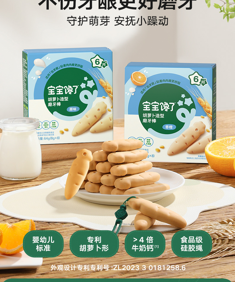 宝宝馋了 婴幼儿胡萝卜形磨牙棒(原味/香橙)64*2 多规格