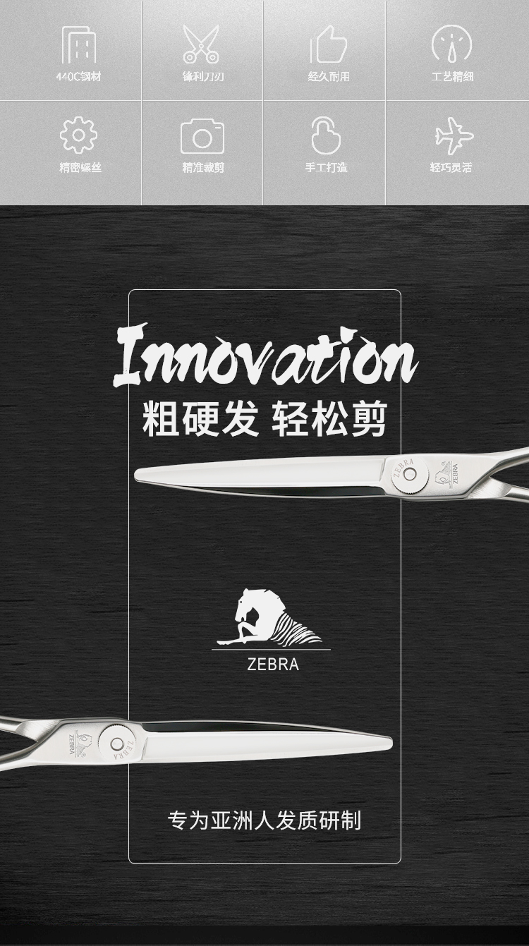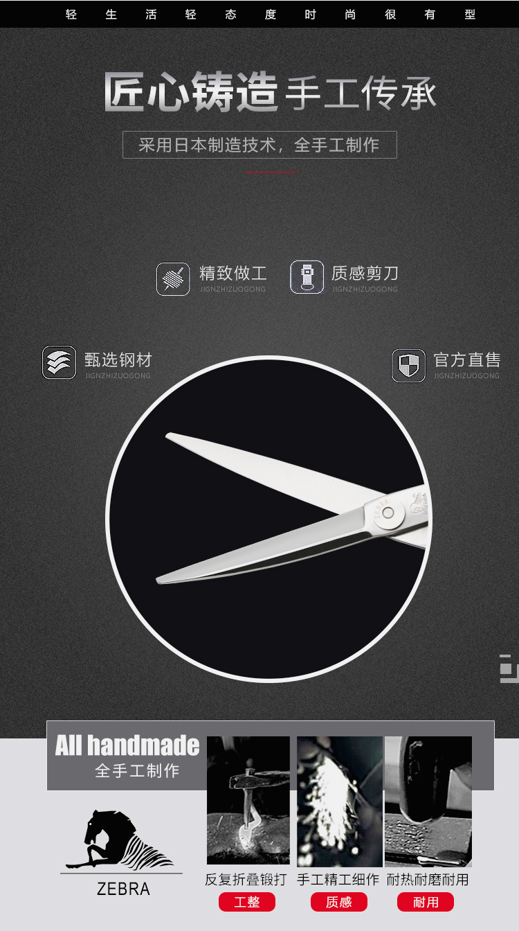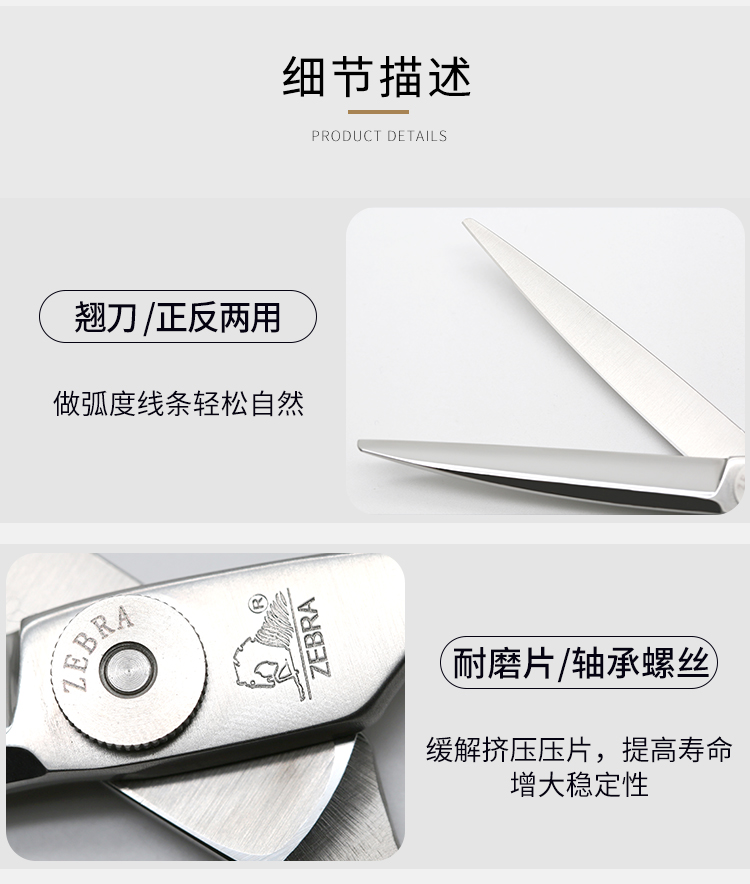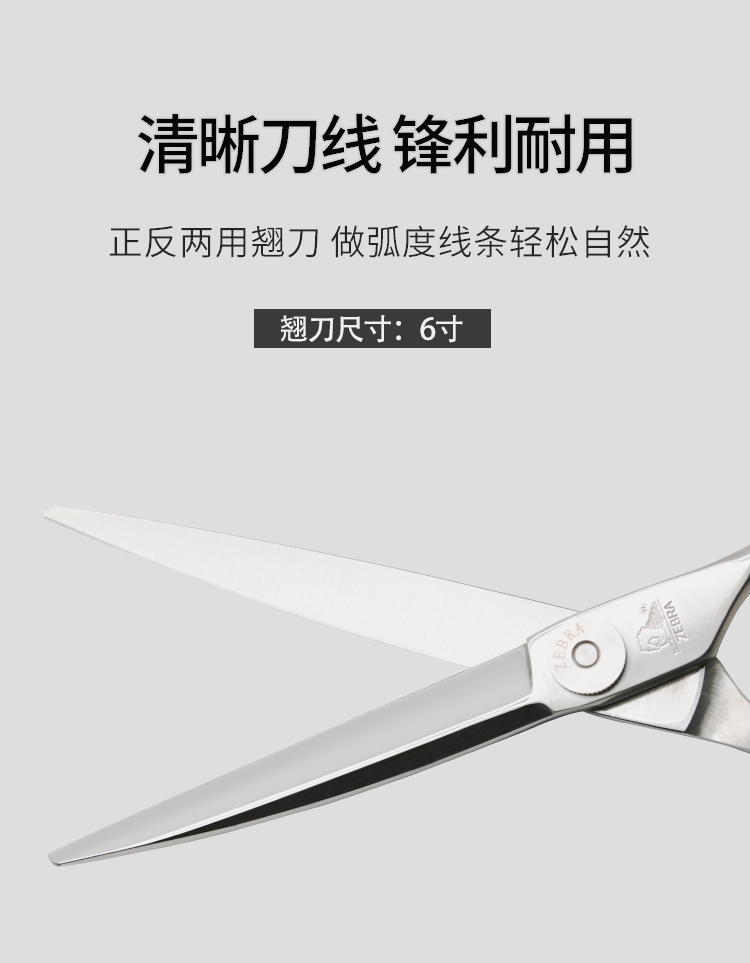 ZEBRA斑马 E60046 翘剪 锋利/平剪/翘剪弯刀/修饰剪刀/日式/纹理/A型蝴蝶柄/6寸