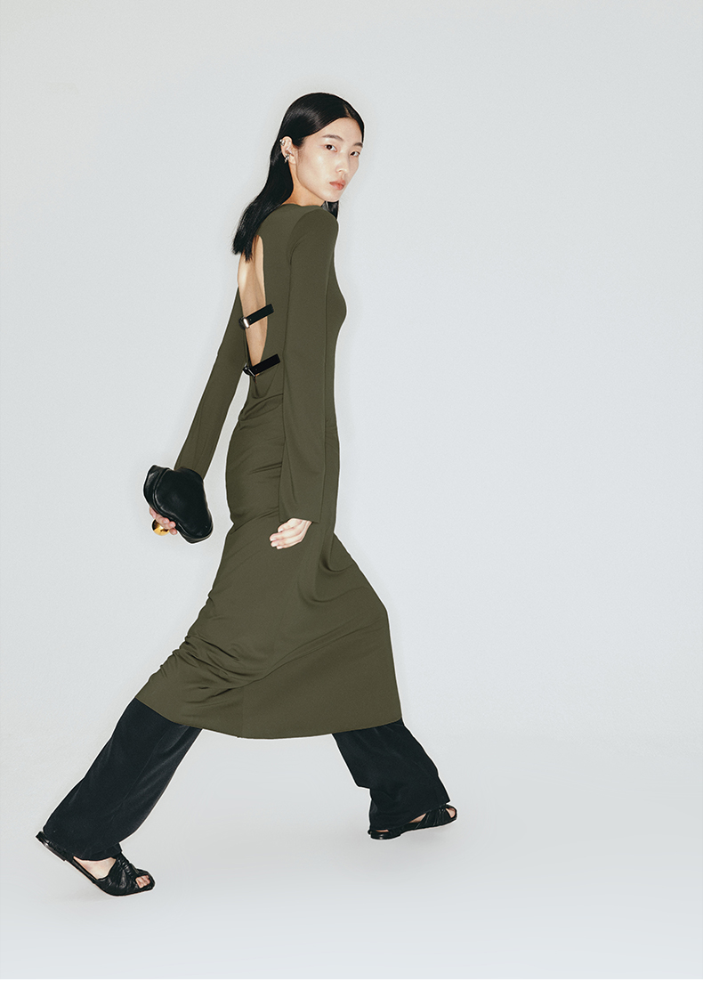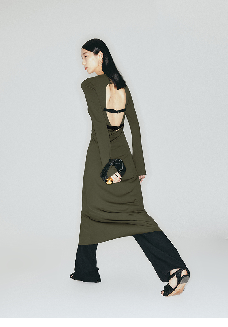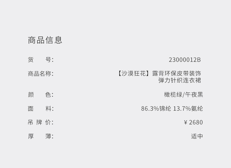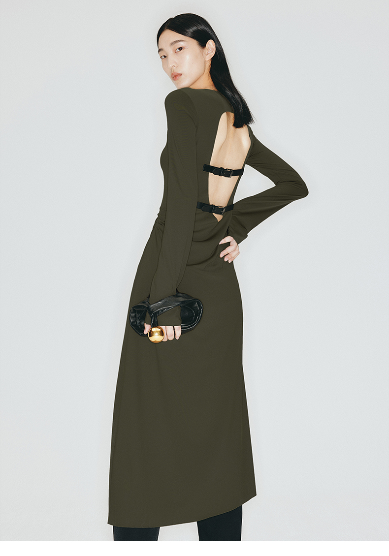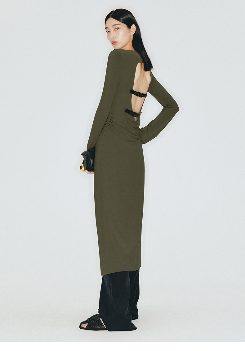 【沙漠狂花】露背环保皮带装饰弹力针织连衣裙/23000012B