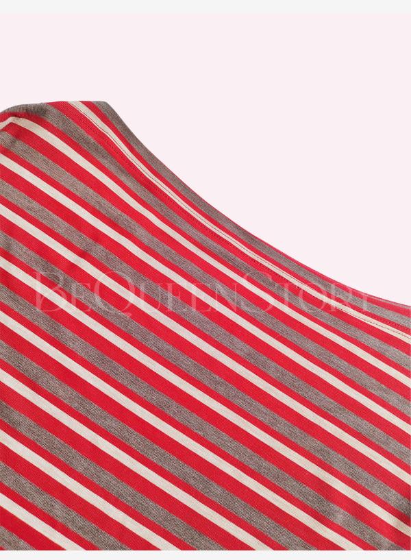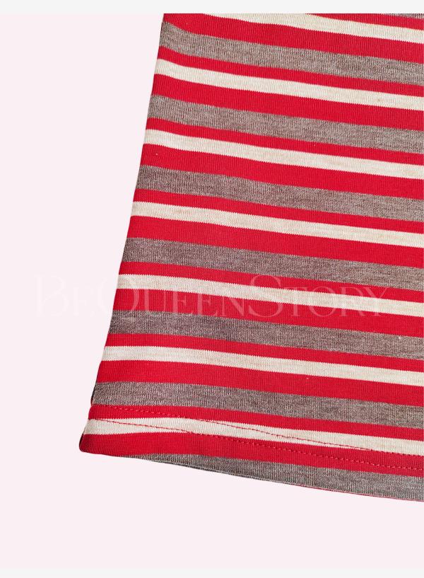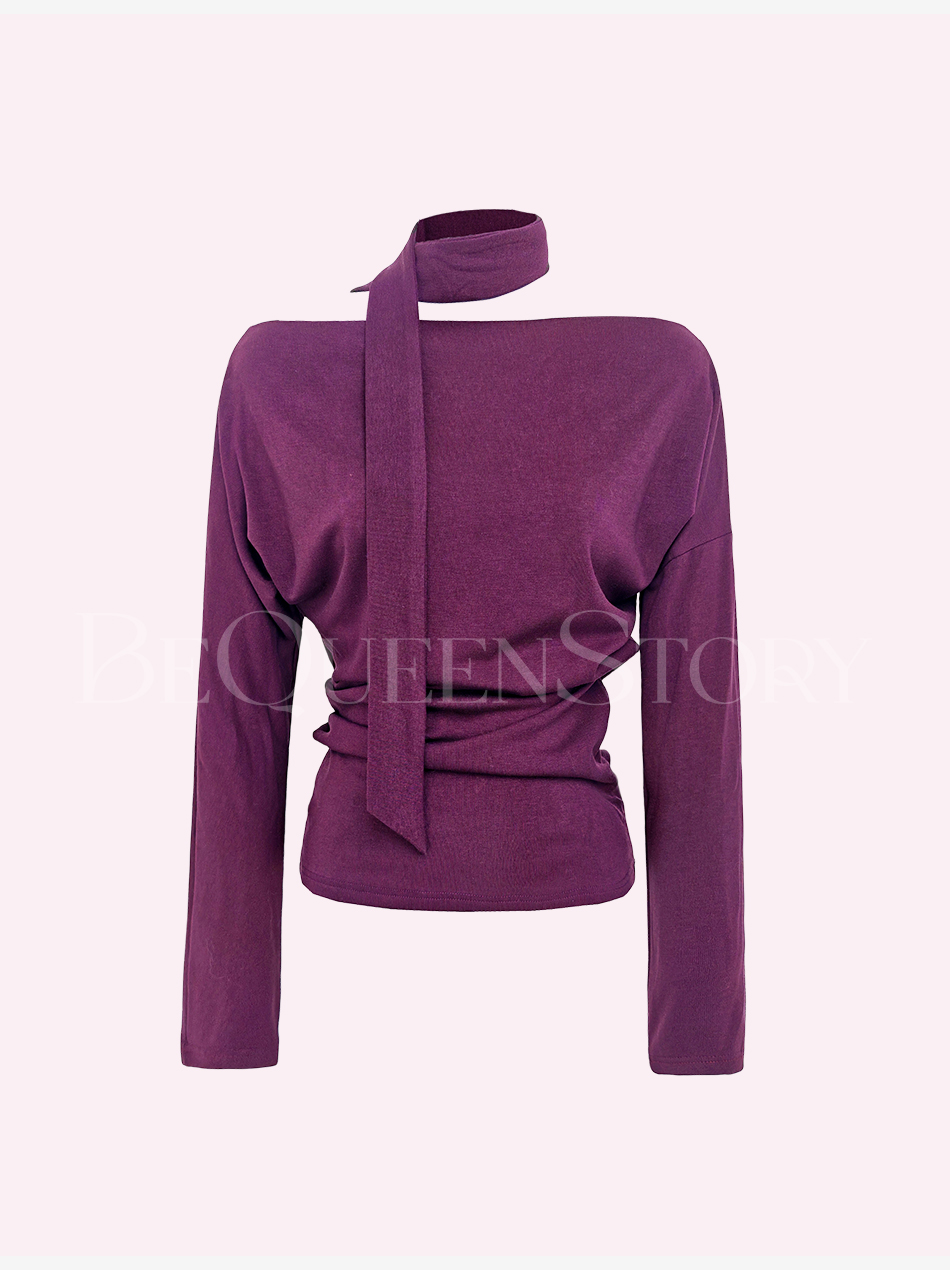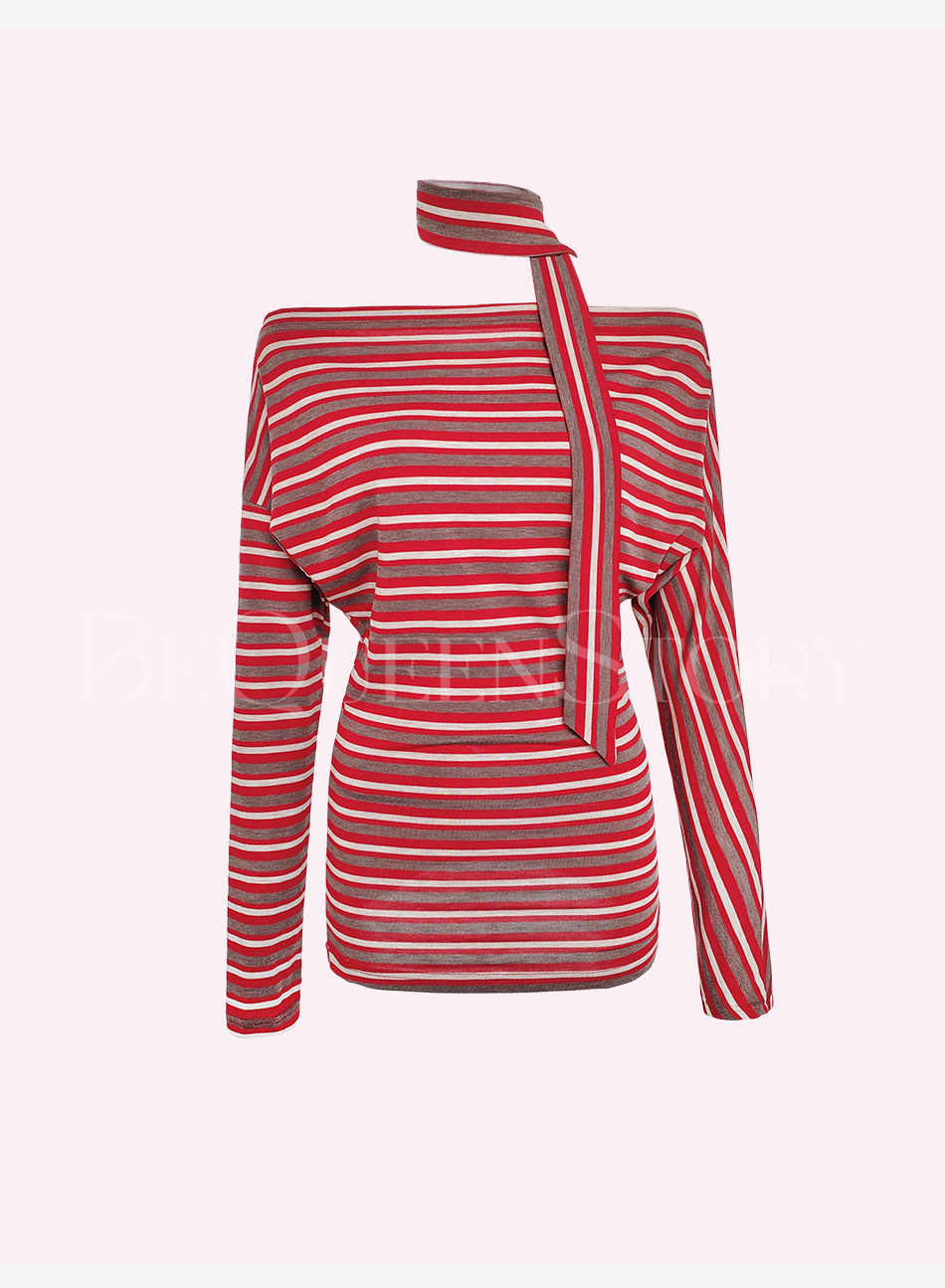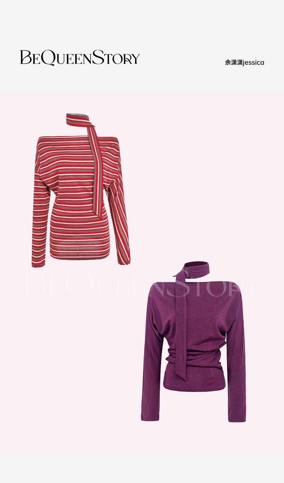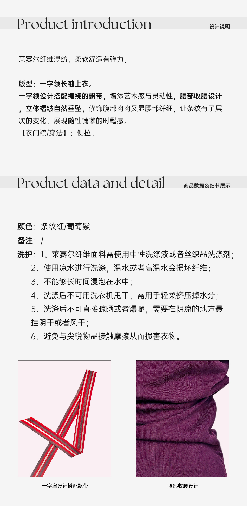 余潇潇【慵懒时髦精】设计感莱赛尔条纹一字领长袖上衣配飘带