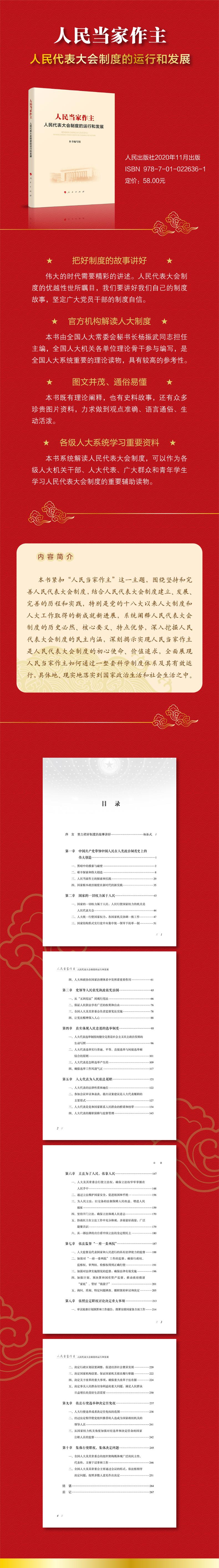 ?配合宣传习近平法治思想。习近平法治思想是新时代全面依法治国的指导思想。坚持人民代表大会制度不动摇,是推进全面依法治国的重要环节,习总书记高度重视,多次强调。 ?中国制度优势的突出体现。习近平总书记指出,人民代表大会制度是符合中国国情和实际、体现社会主义国家性质、保证人民当家作主、保障实现中华民族伟大复兴的好制度。 ?权威机构、权威作者、权威解读。本书由全国人大常委会秘书长杨振武同志担任主编,全国人大机关各单位理论骨干参与编写,是全国人大系统必备的理论读物,具有较高的权威性。 通俗理论读物性。本书既有理论阐释,也有史料故事,还有众多珍贵图片资料,力求做到观点权威准确、语言通俗易懂、形式生动活泼,是宣传人大制度和人大工作的权威读物,可作为人大机关干部、人大代表、广大群众和青年学生学习人民代表大会制度的重要辅助读物。