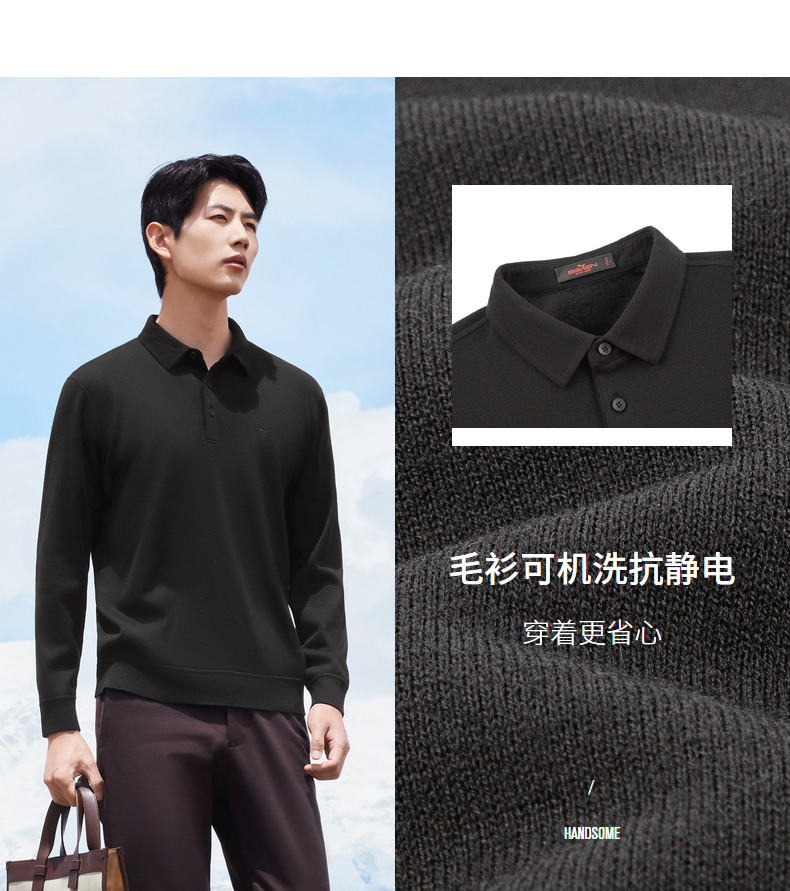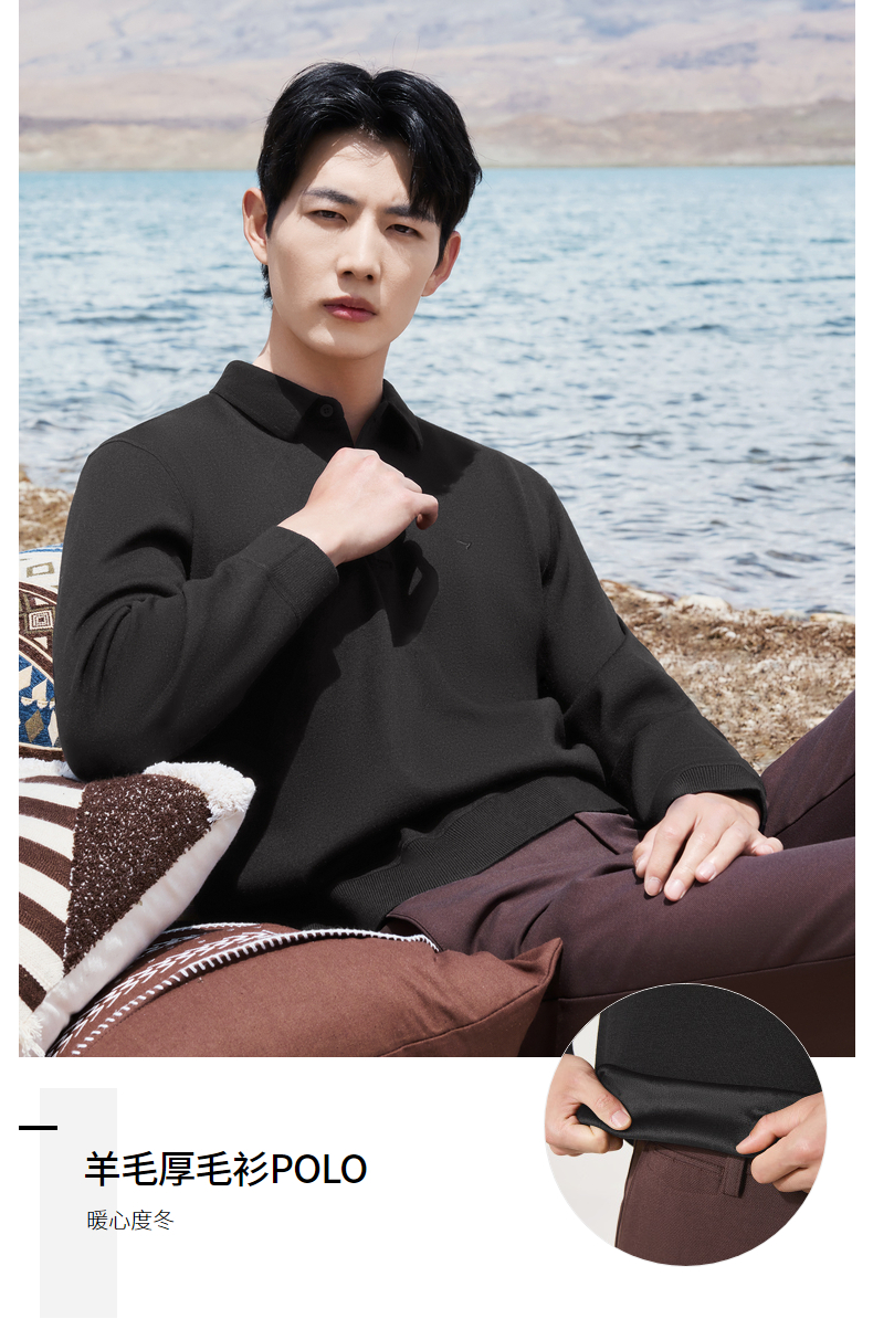 【含羊毛/桑蚕丝】柒牌套头厚毛衫秋冬加绒保暖男士毛衣可机洗129Y70840